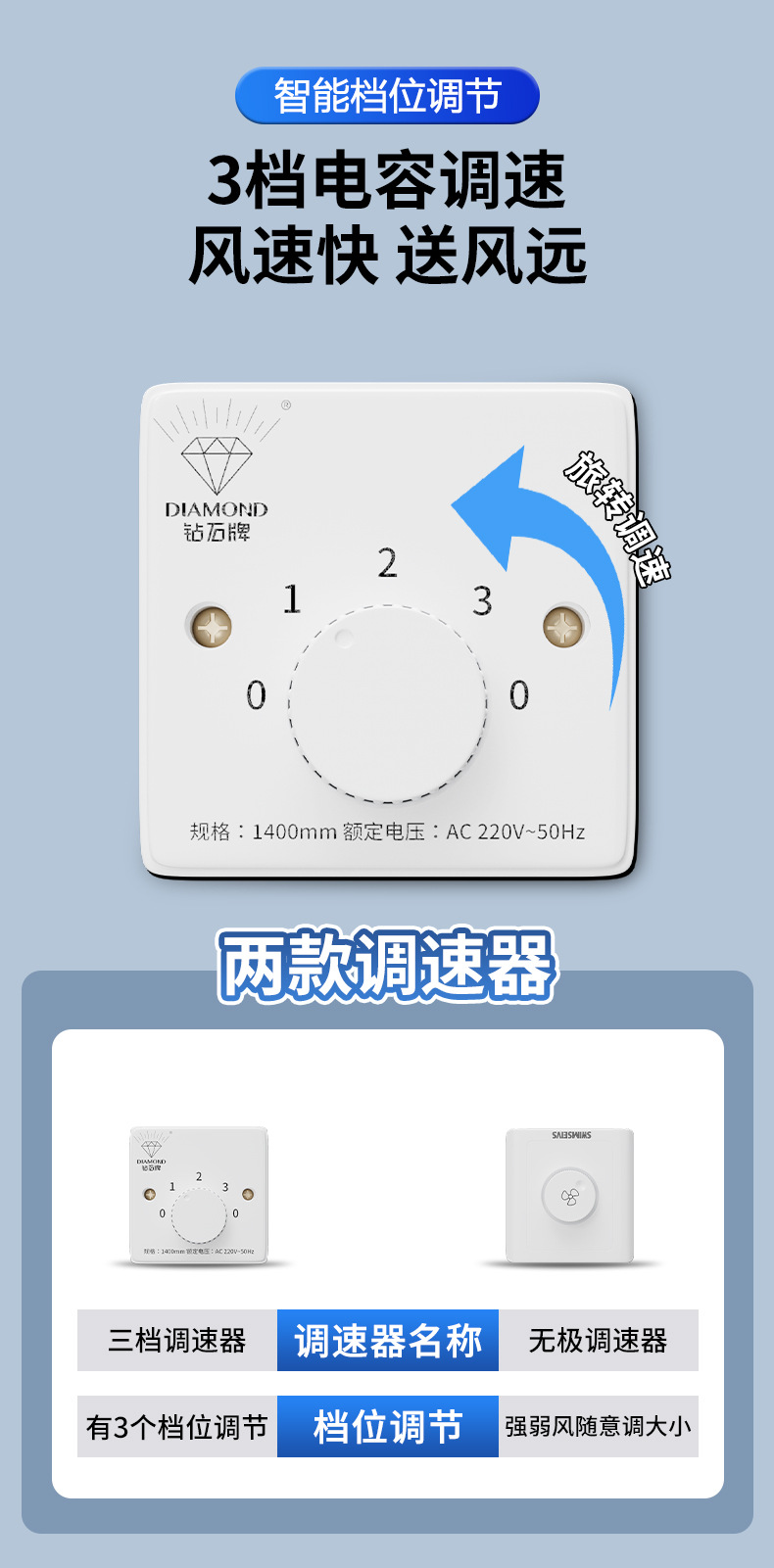 56-inch white {double five-gear remote control}