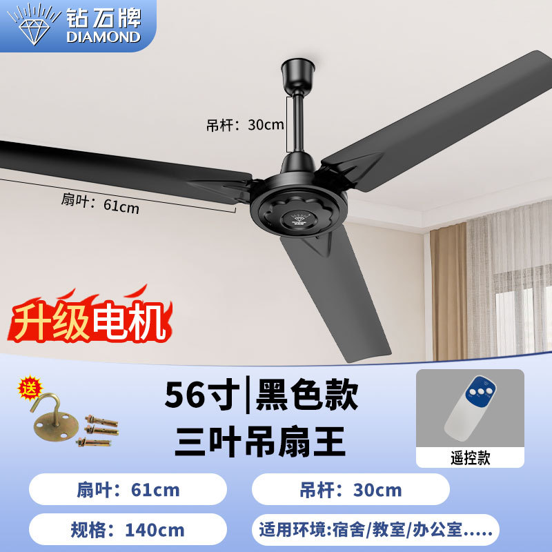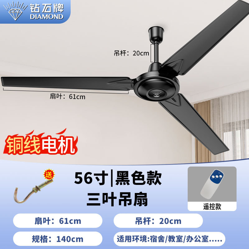 [copper wire] 56-inch black three-leaf hanging king {double five-gear remote control}