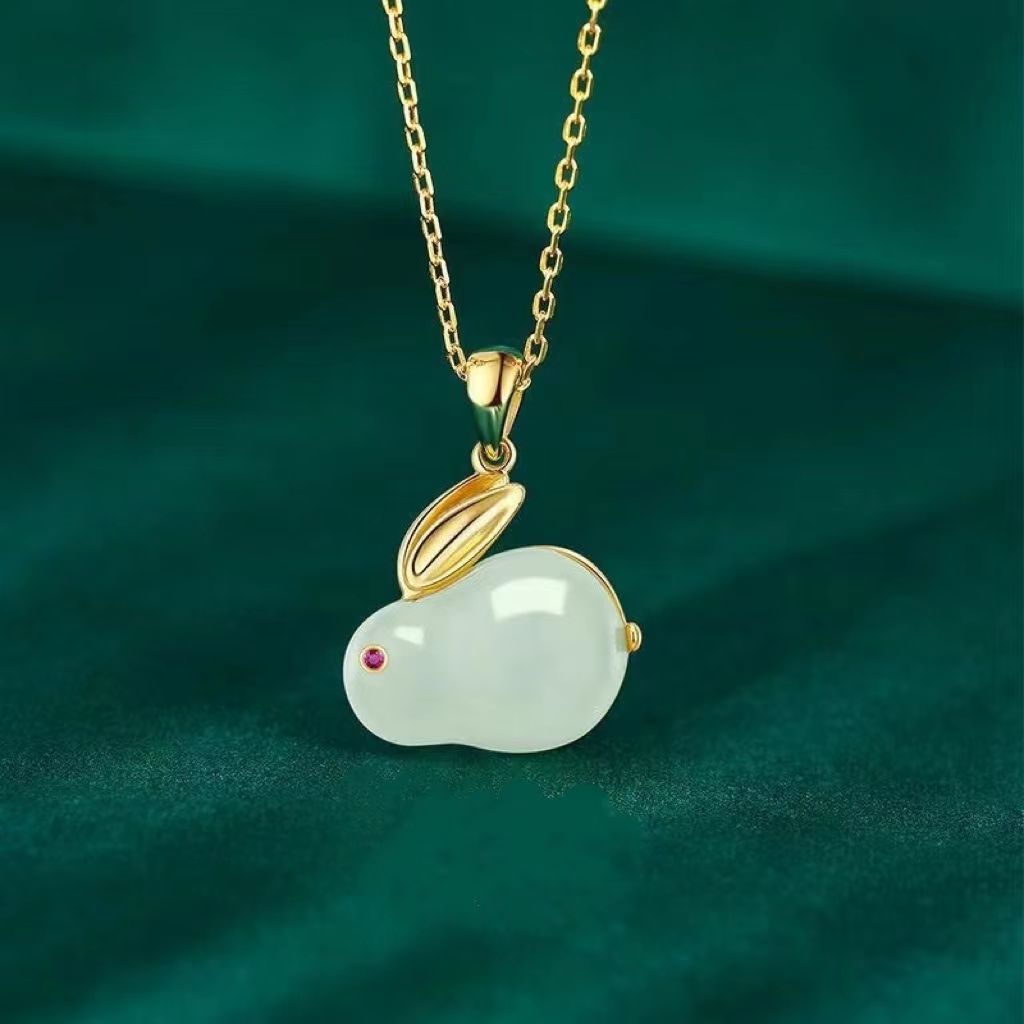 imitation gold jade hare necklace