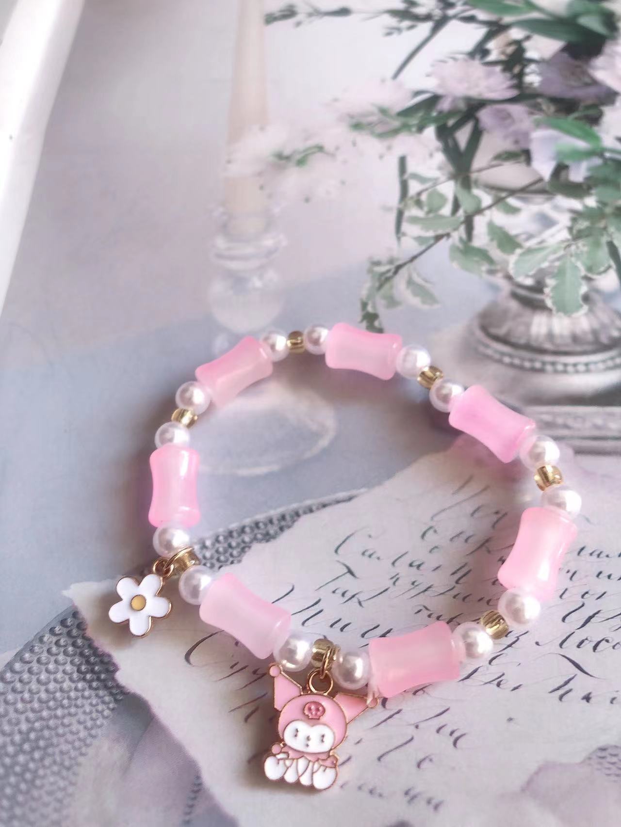 s208 pink bamboo string pearl powder clow m bracelet