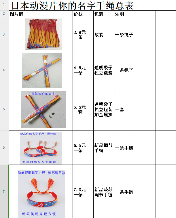 japanese anime your name bracelet bulk