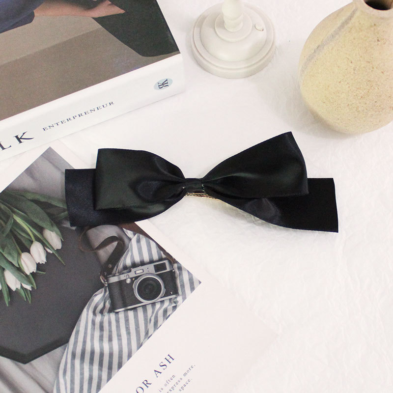 7# black polyester bow a pair of hairclips