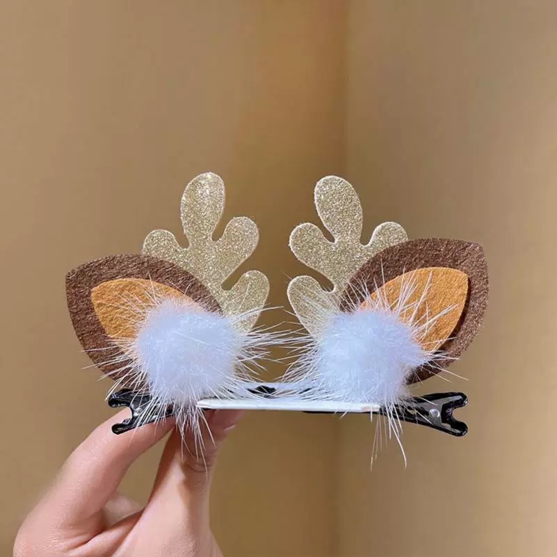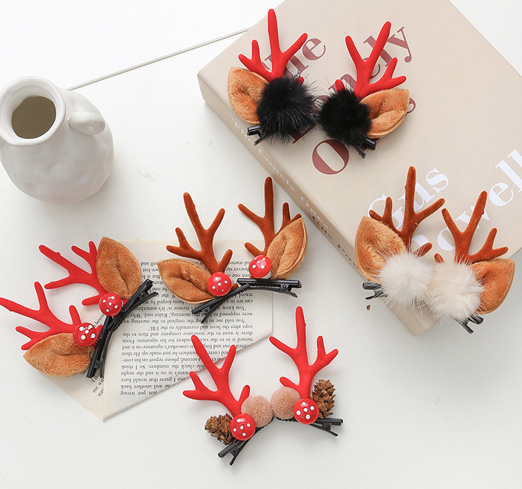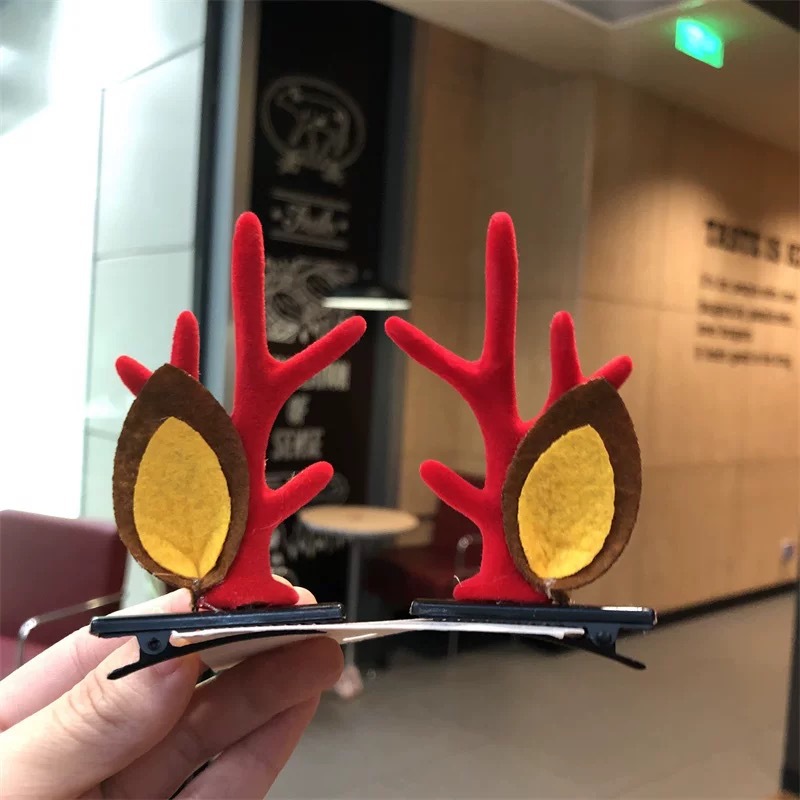 10# mink hair simulation-red antlers a pair of hairclips