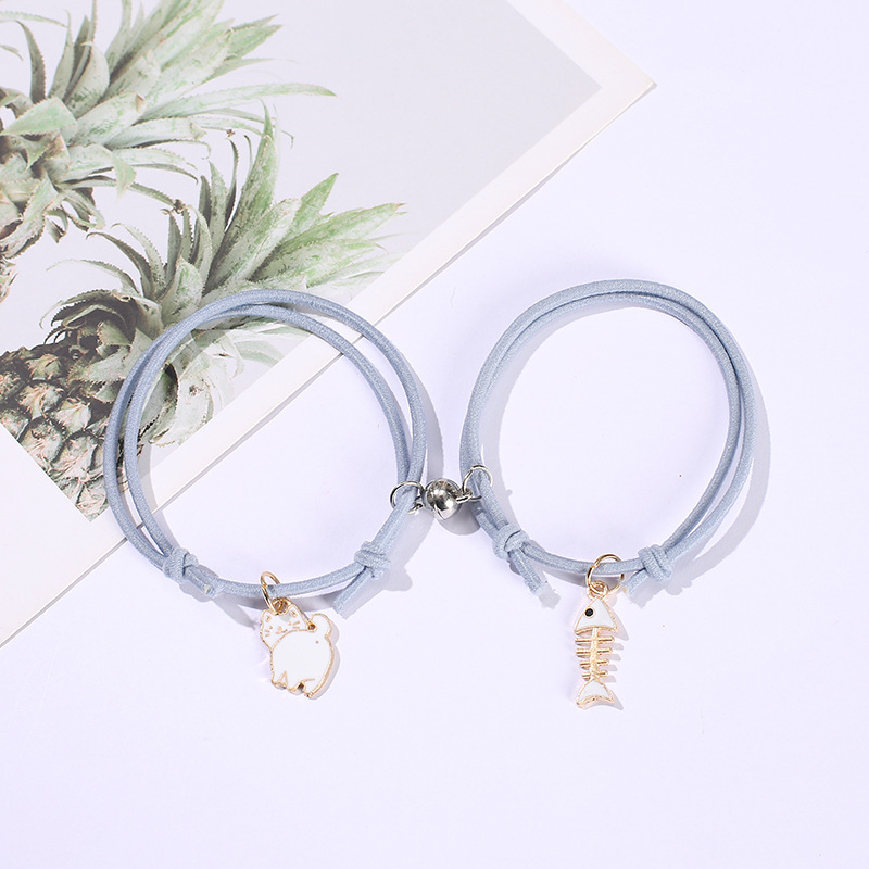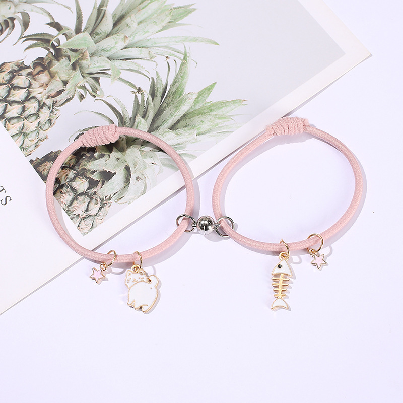 28# little star style white cat + white fishbone [pink rope pair magnetic suction]]