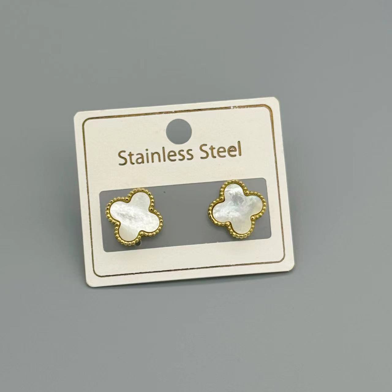 single-sided white shell ear studs