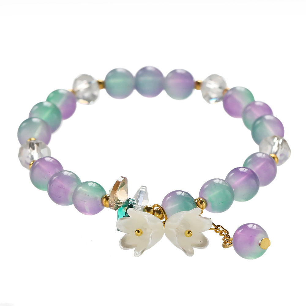 glass imitation jade lily bracelet-purple and white