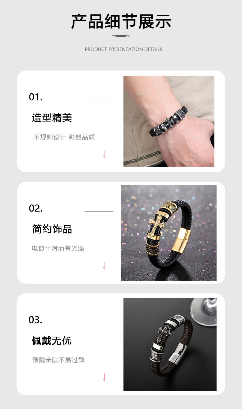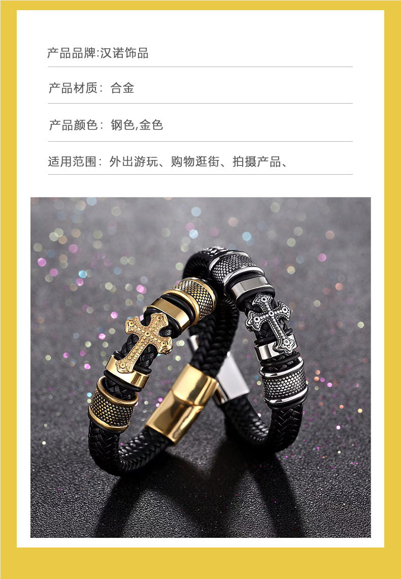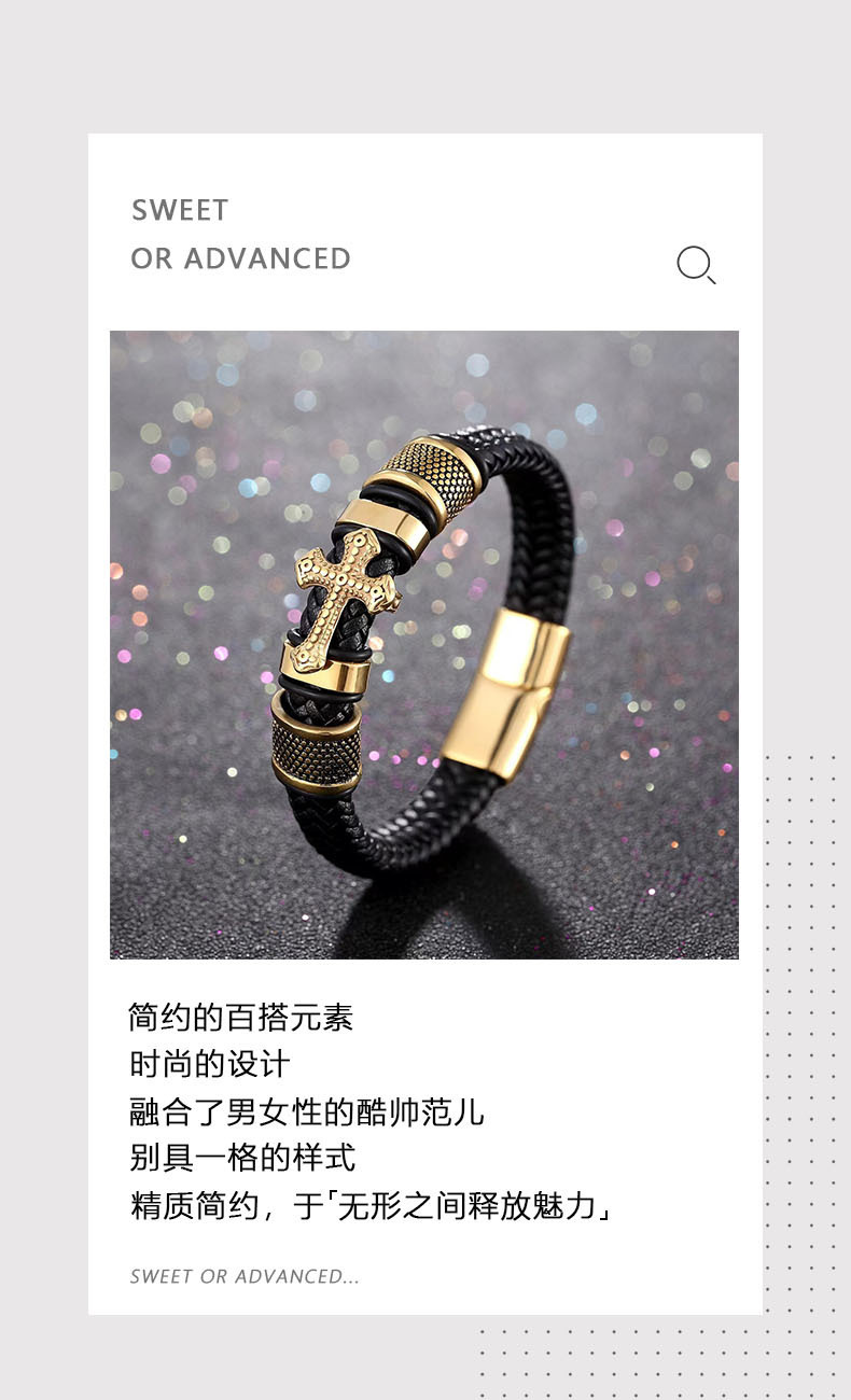 s297-a (woven cross leather bracelet) steel color