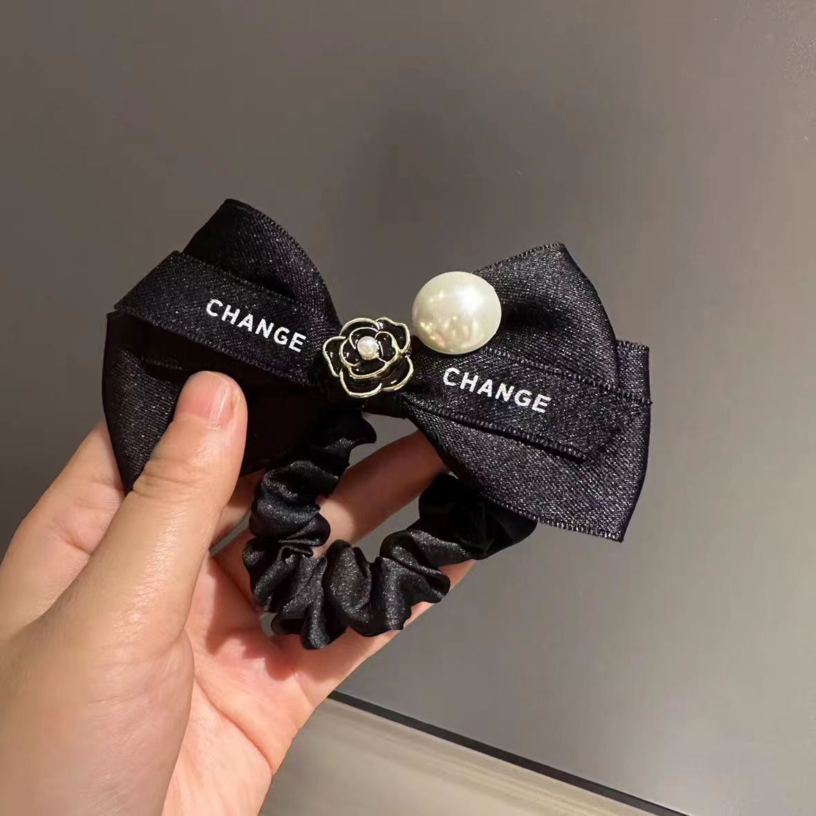white knot black camellia balls clip