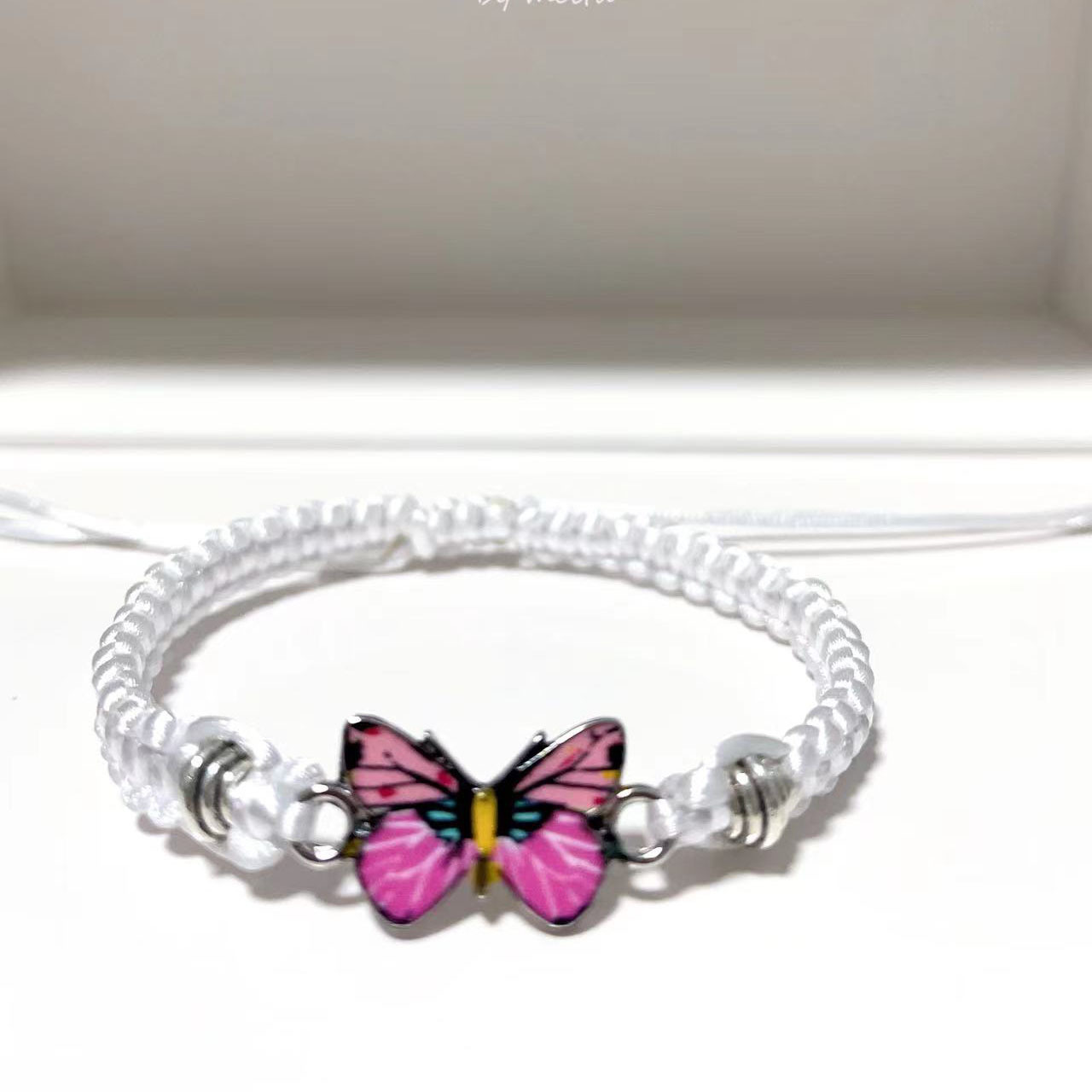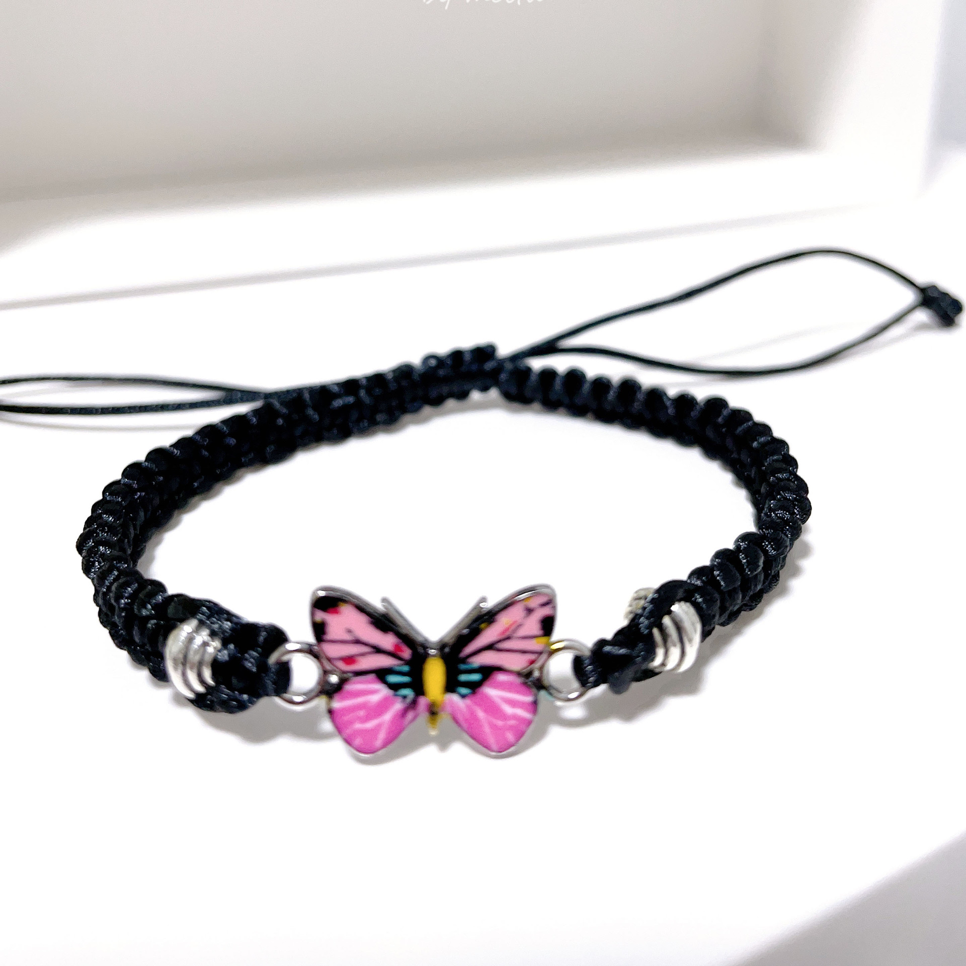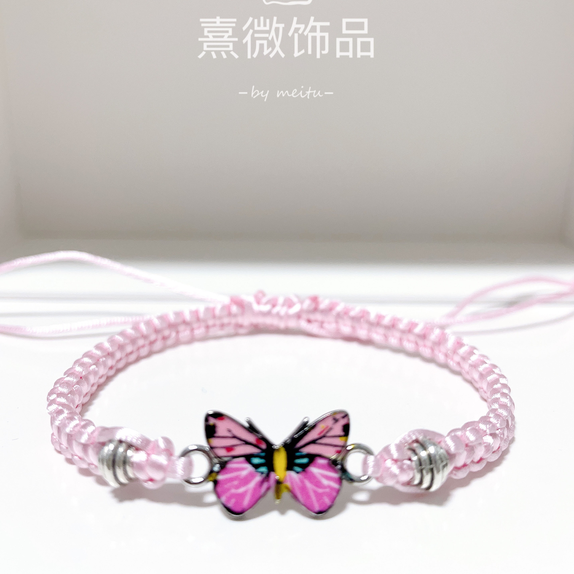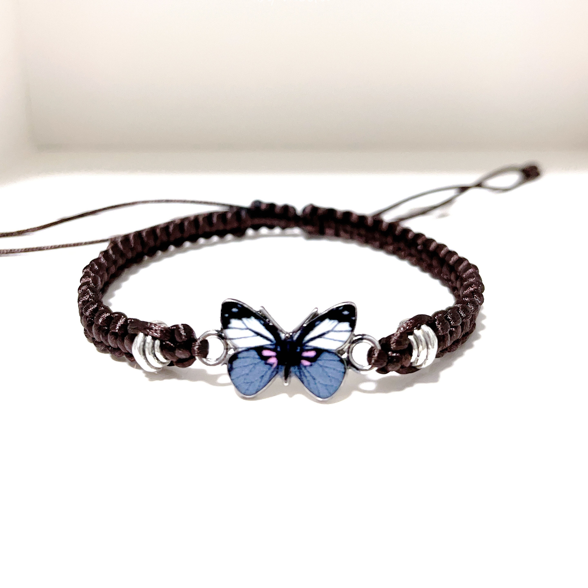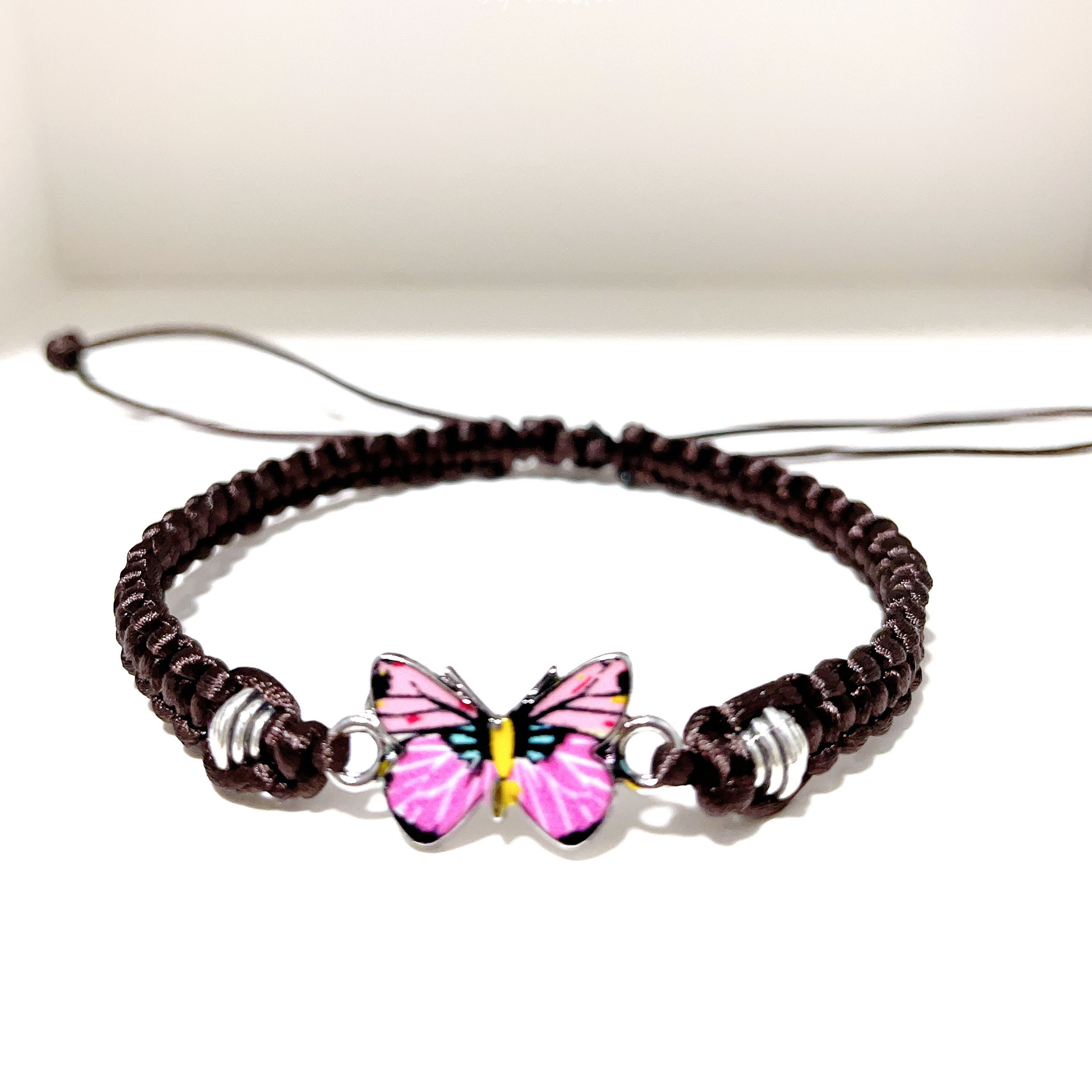 brown thread + pink butterfly