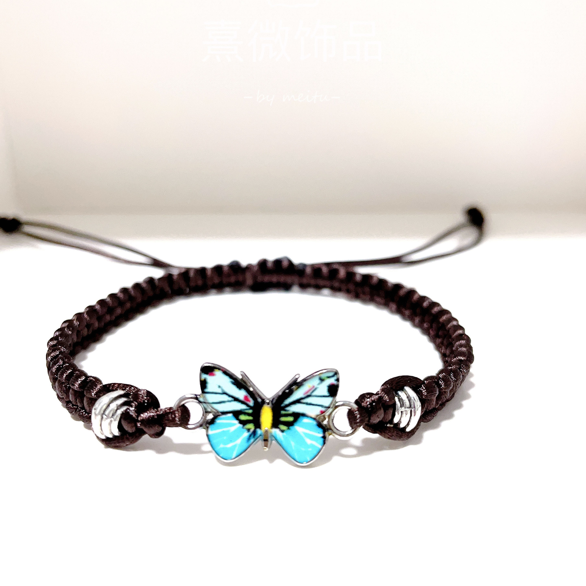 brown line + blue butterfly
