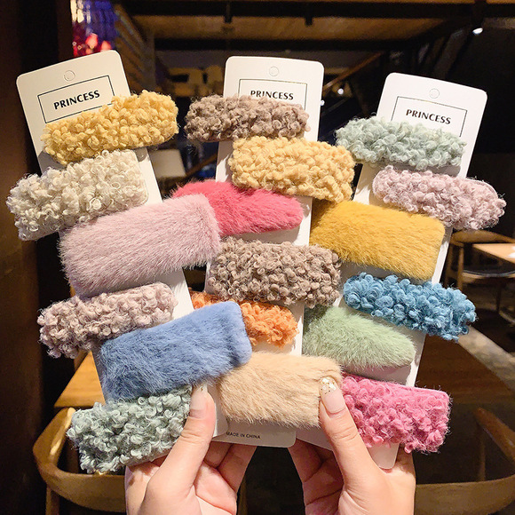 3 * square hairy hair clips [random mixed color]]