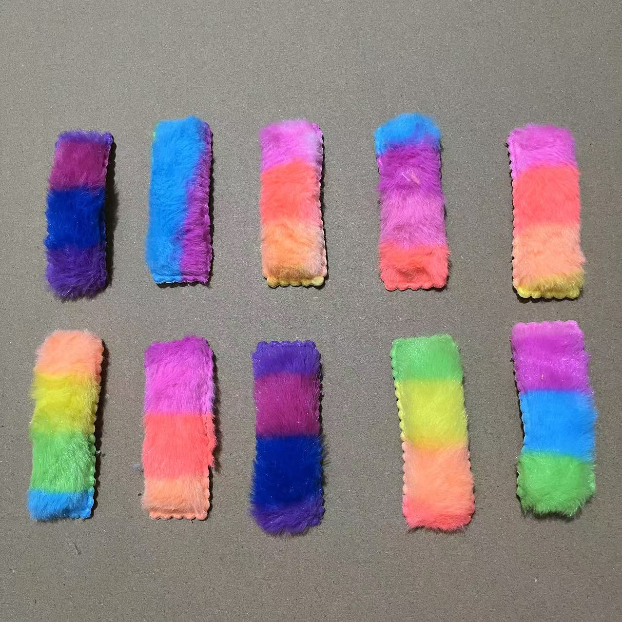 6 * rainbow square hairy hair clips [random mixed color]]