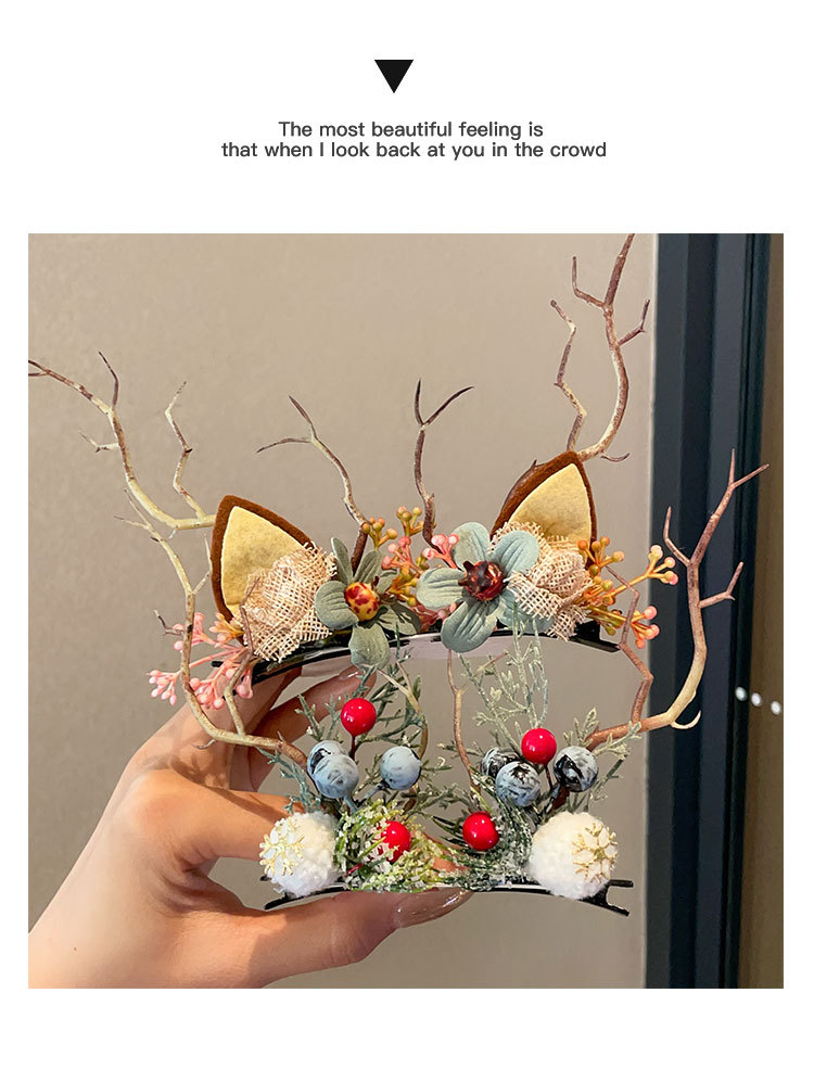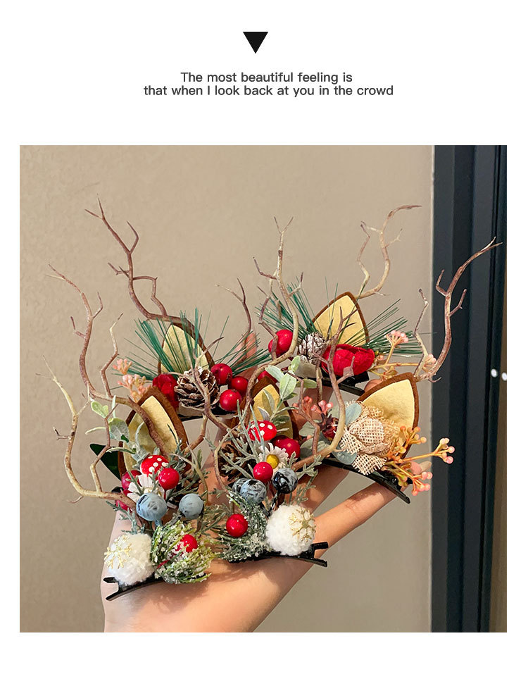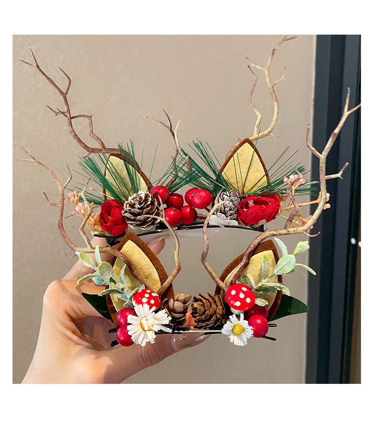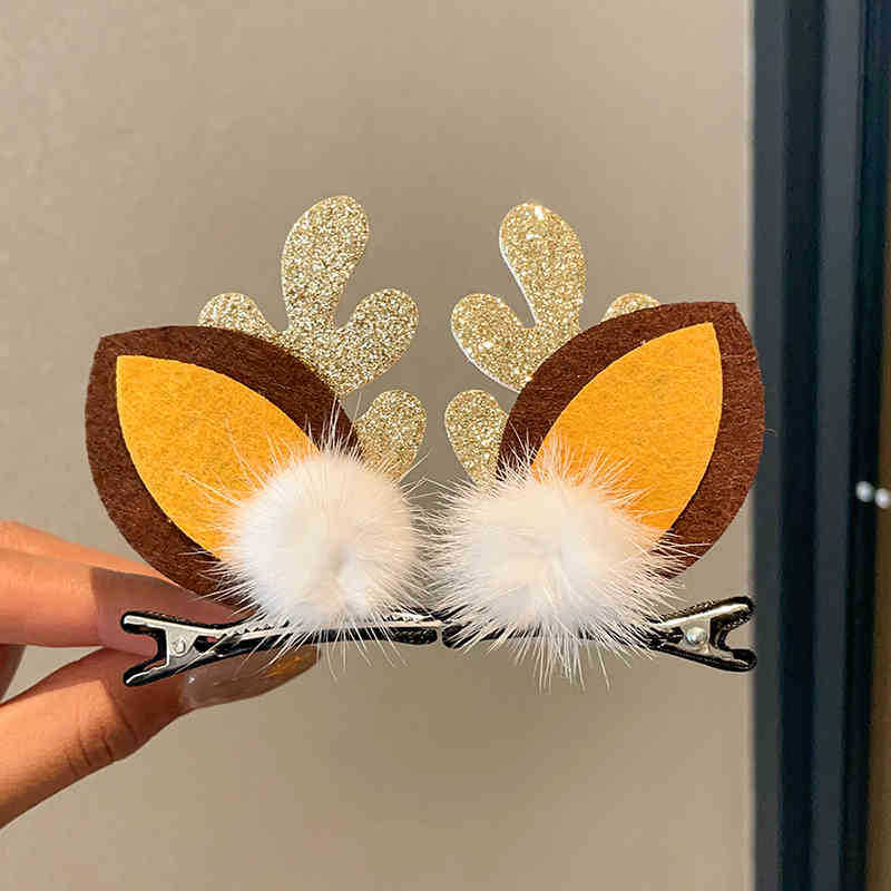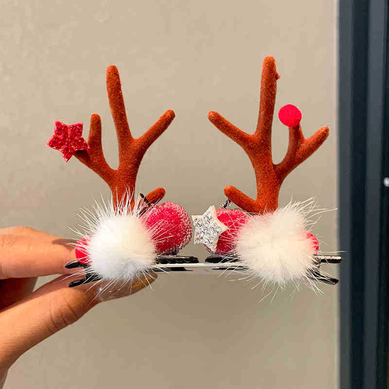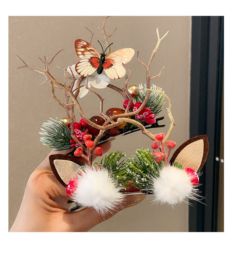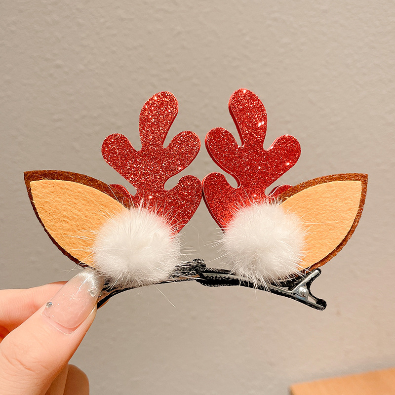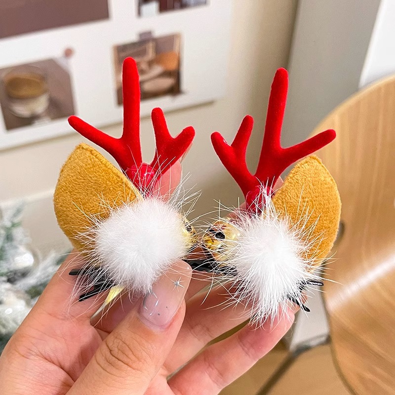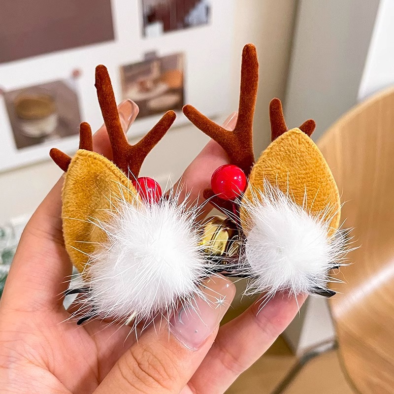 8# fur ball ears red antlers a pair of barrettes