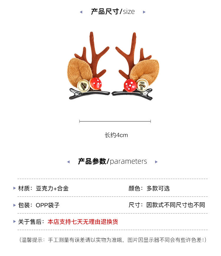 5# red ears antlers barrettes