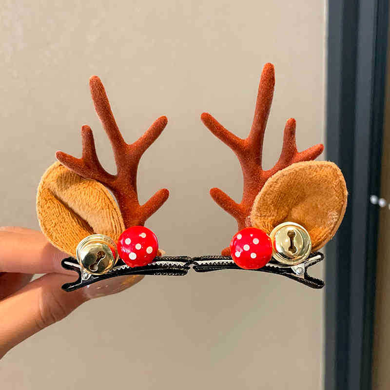 2# red and green ball brown antlers barrettes
