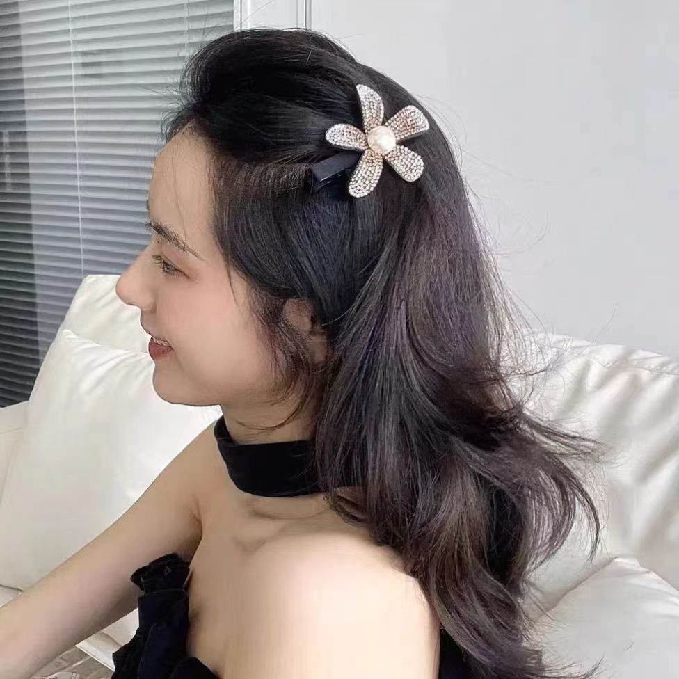 shiny full diamond champagne flower duck bill clip