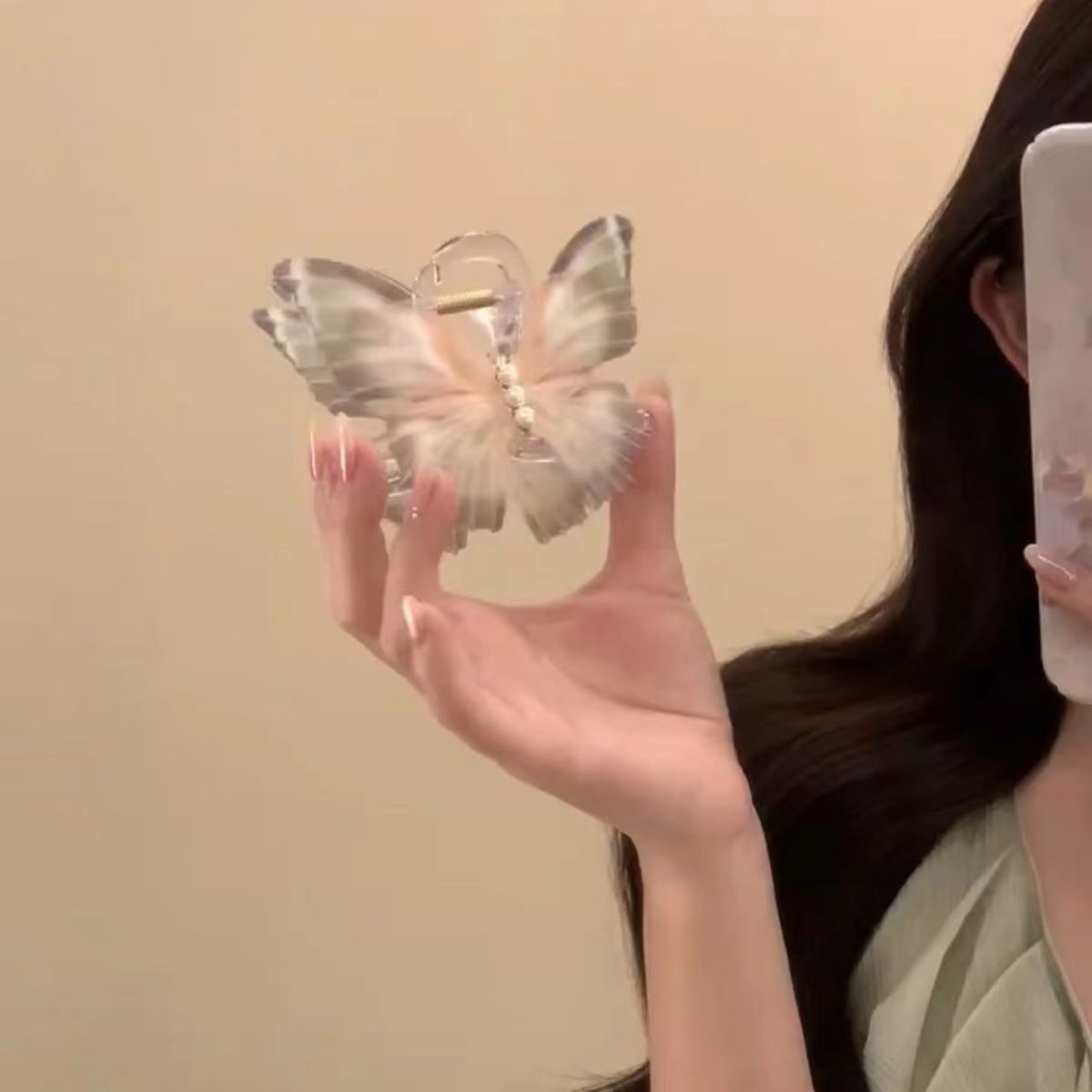 butterfly pendant grip beige