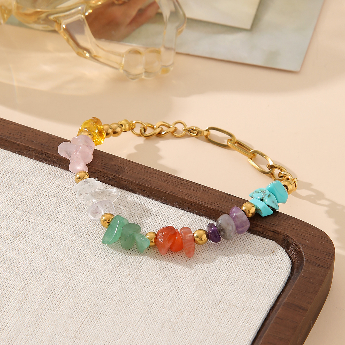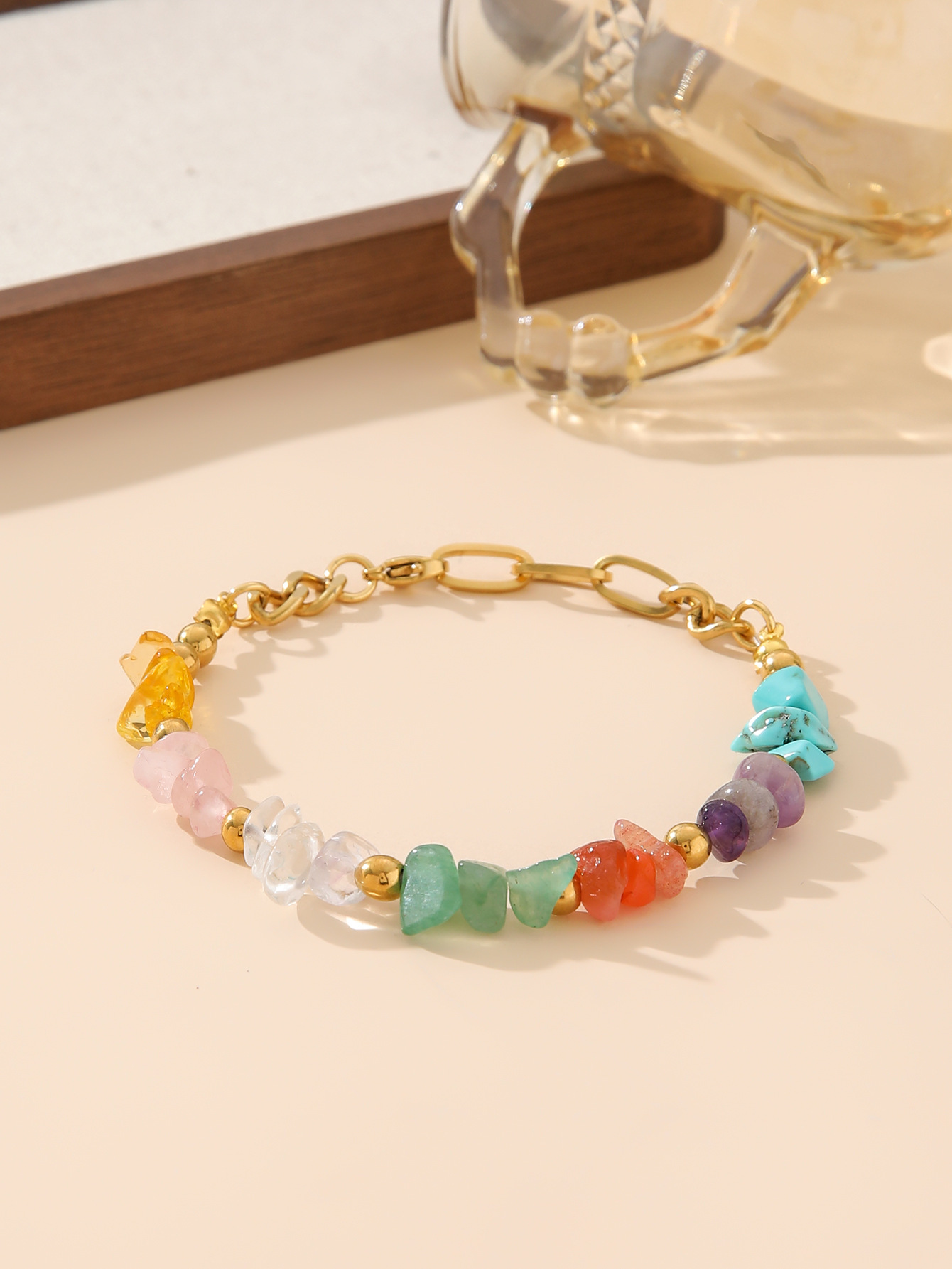 irregular color gravel golden balls bracelet