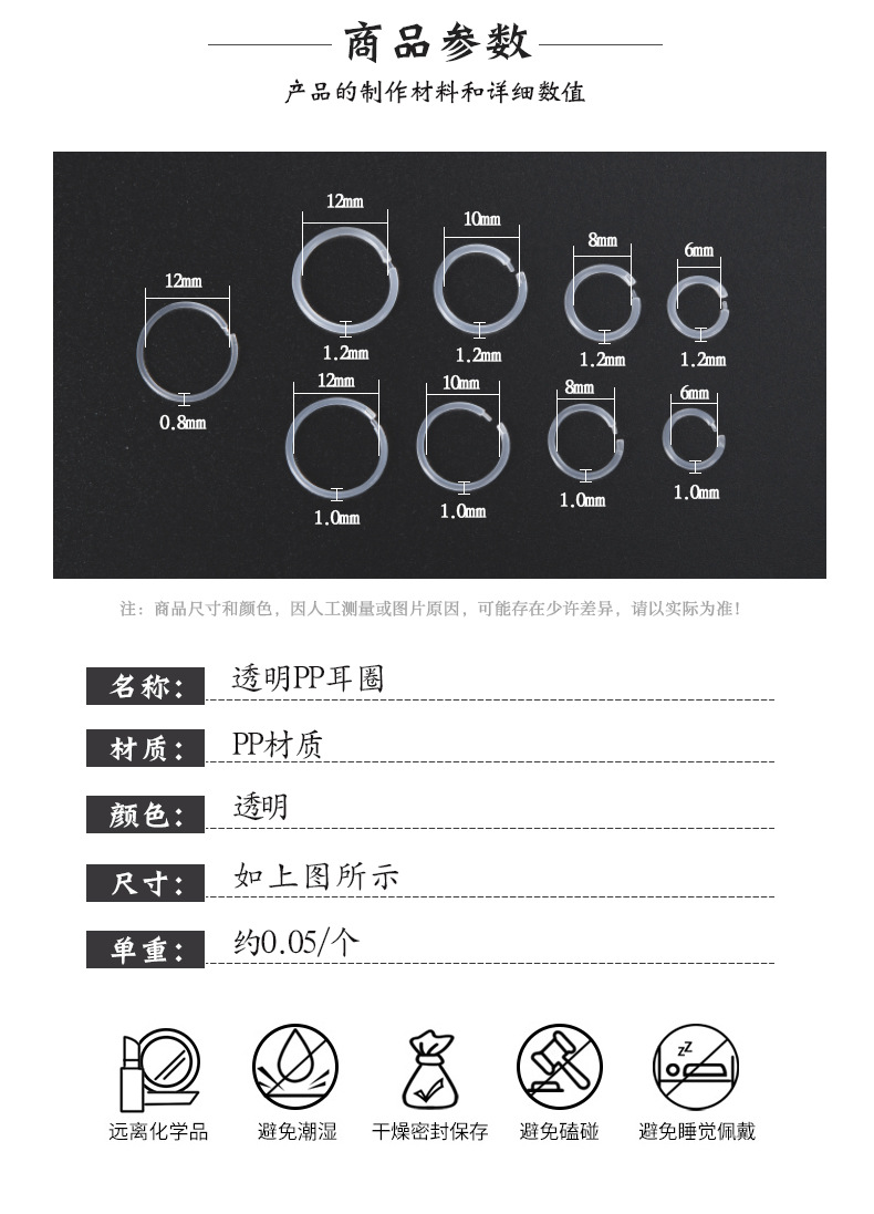 [0.8 * 12mm inner diameter] transparent pp ear ring