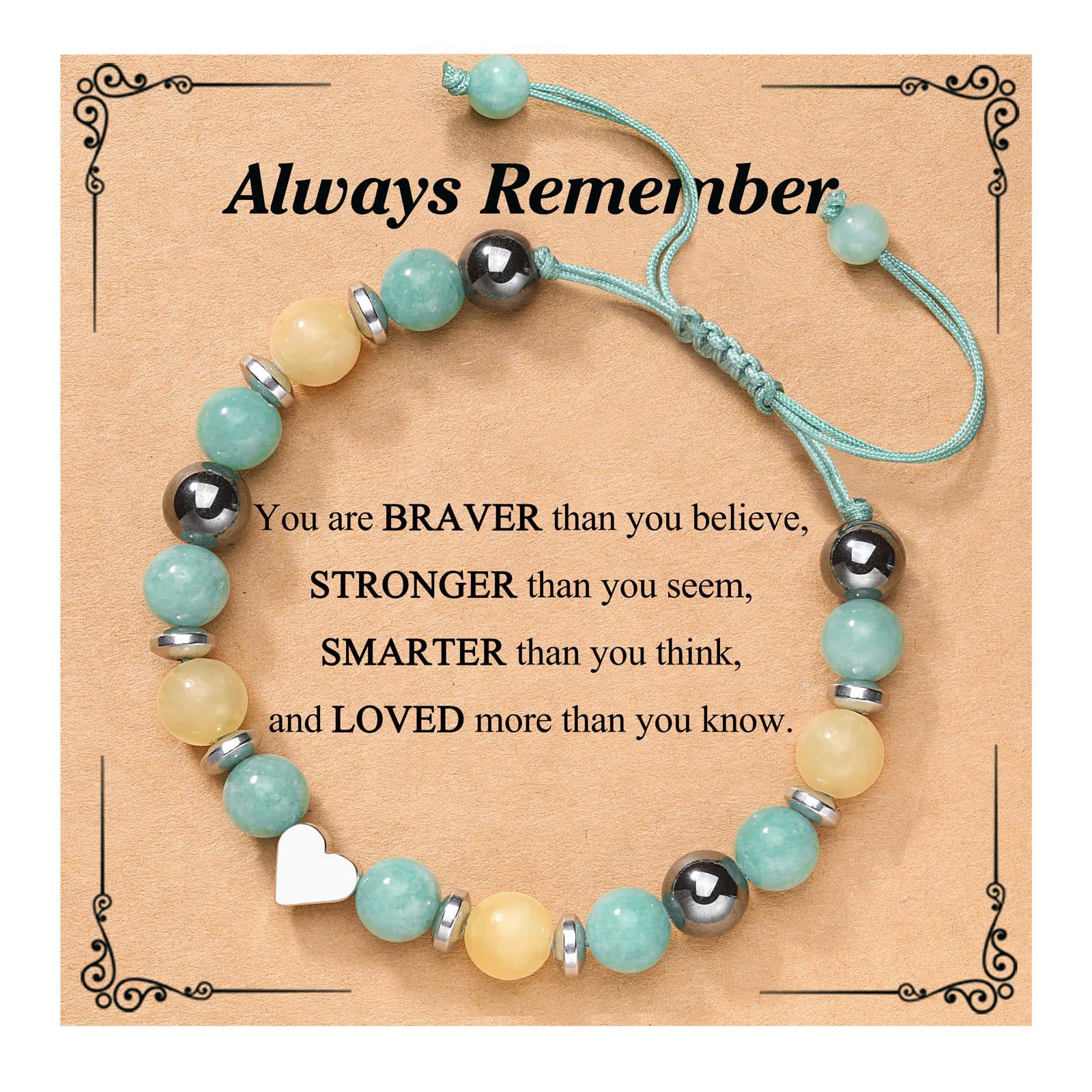 yellow blue black beads + magnet + love heart + always card