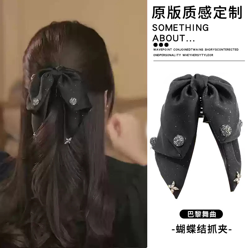 2# black vintage satin bow claw clip