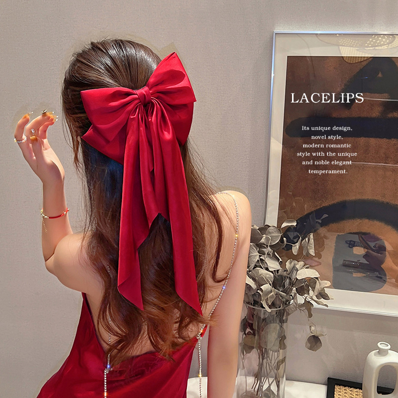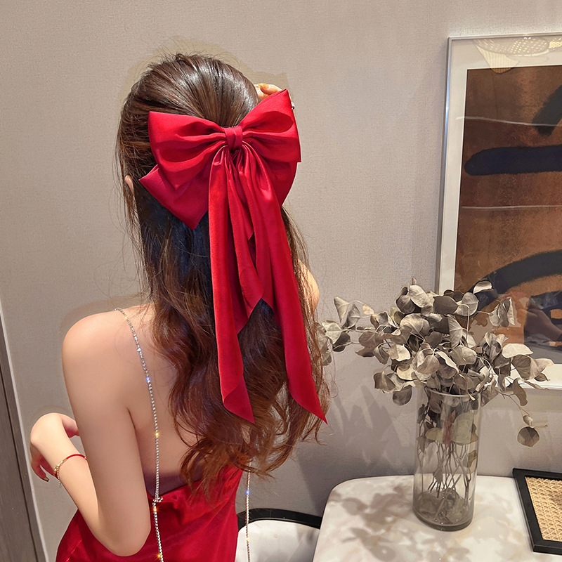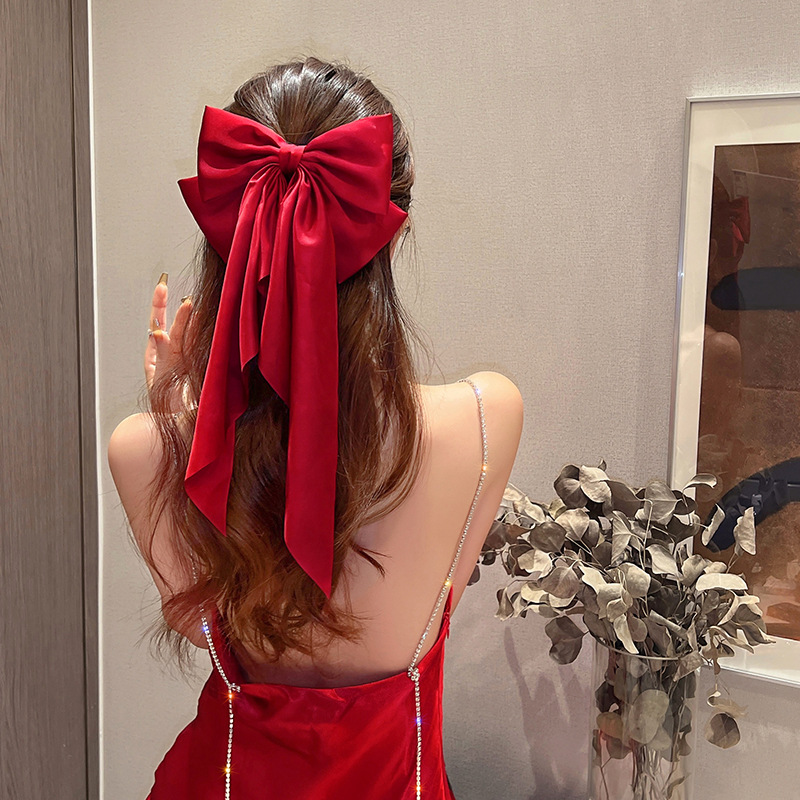 wine red satin big bow