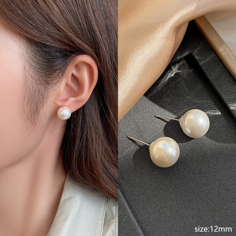 ...☝∩✎#64# pearl stud earrings-silver needle 12mm✎∩☝...