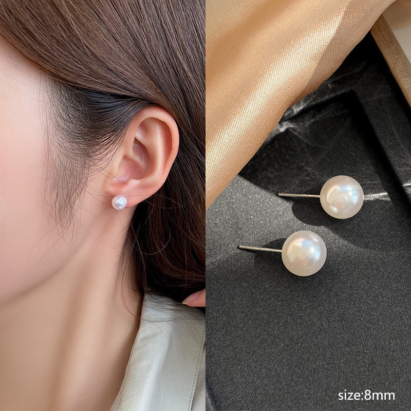 ...☝∩✎#62# pearl stud earrings-silver needle 8mm✎∩☝...