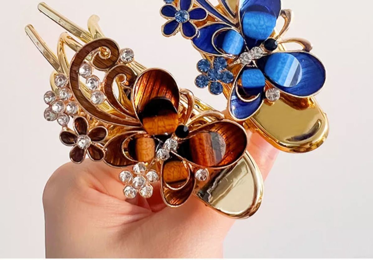 brown butterfly flower duckbill clip