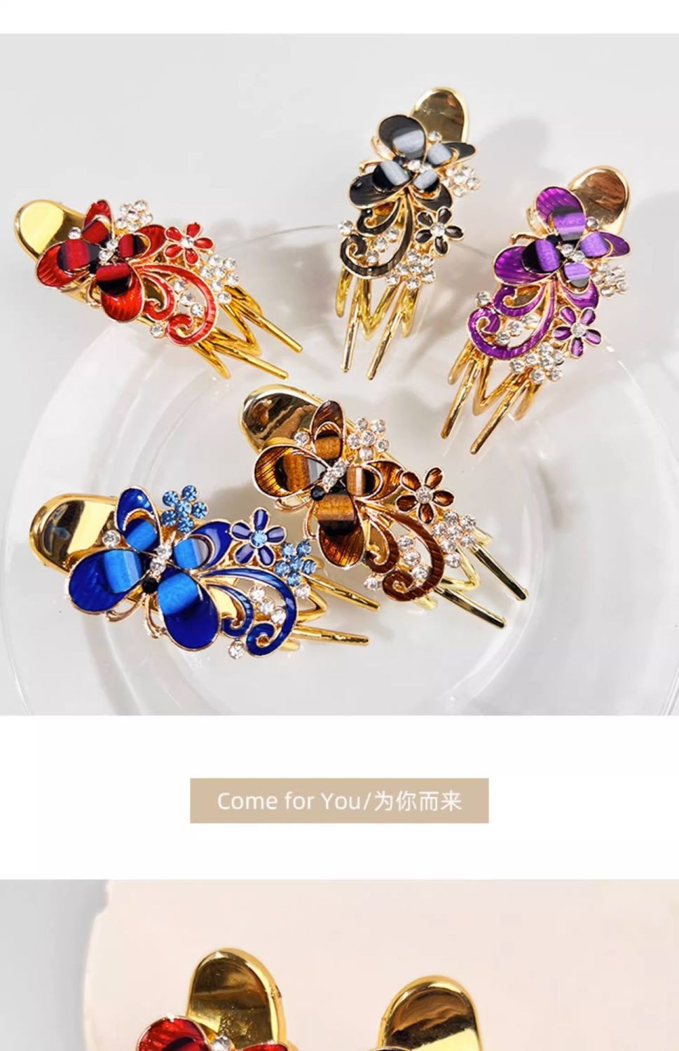 gray butterfly flower duckbill clip