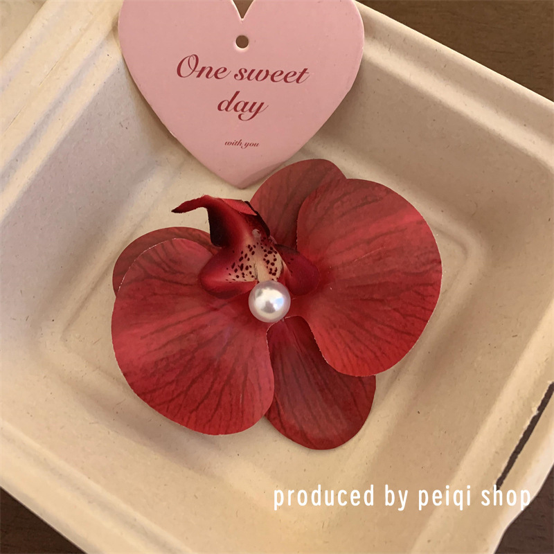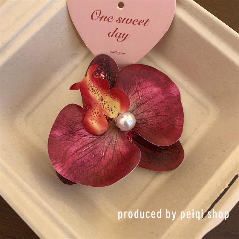 dark red-phalaenopsis pearl barrettes