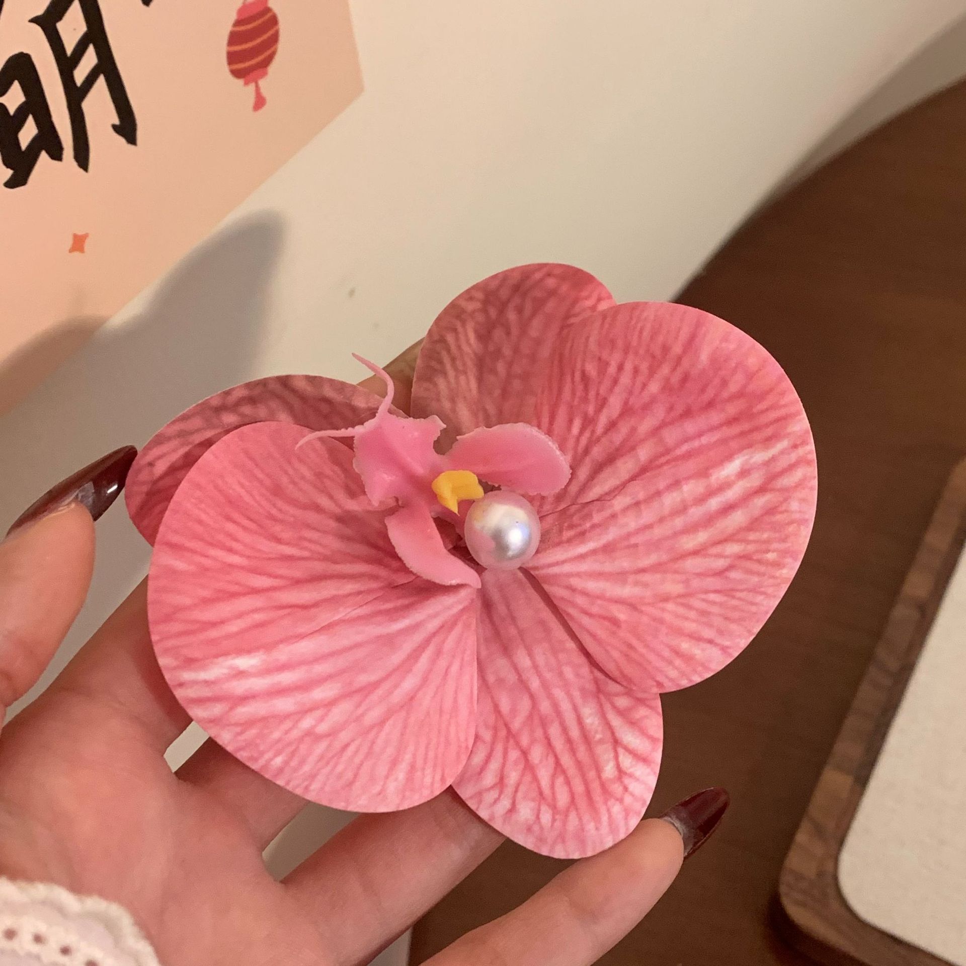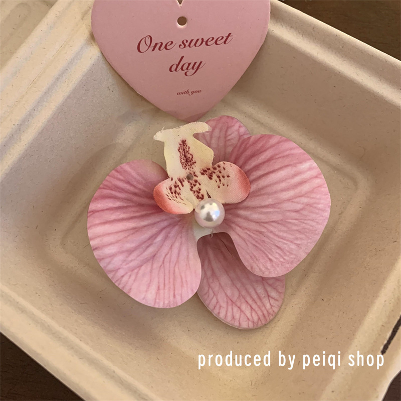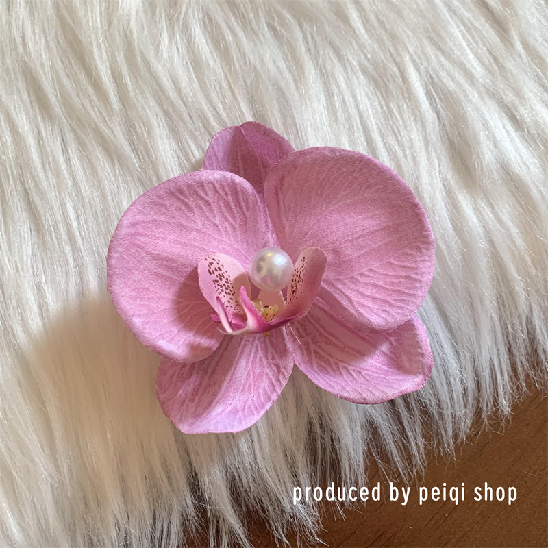 meat powder-phalaenopsis pearl barrettes