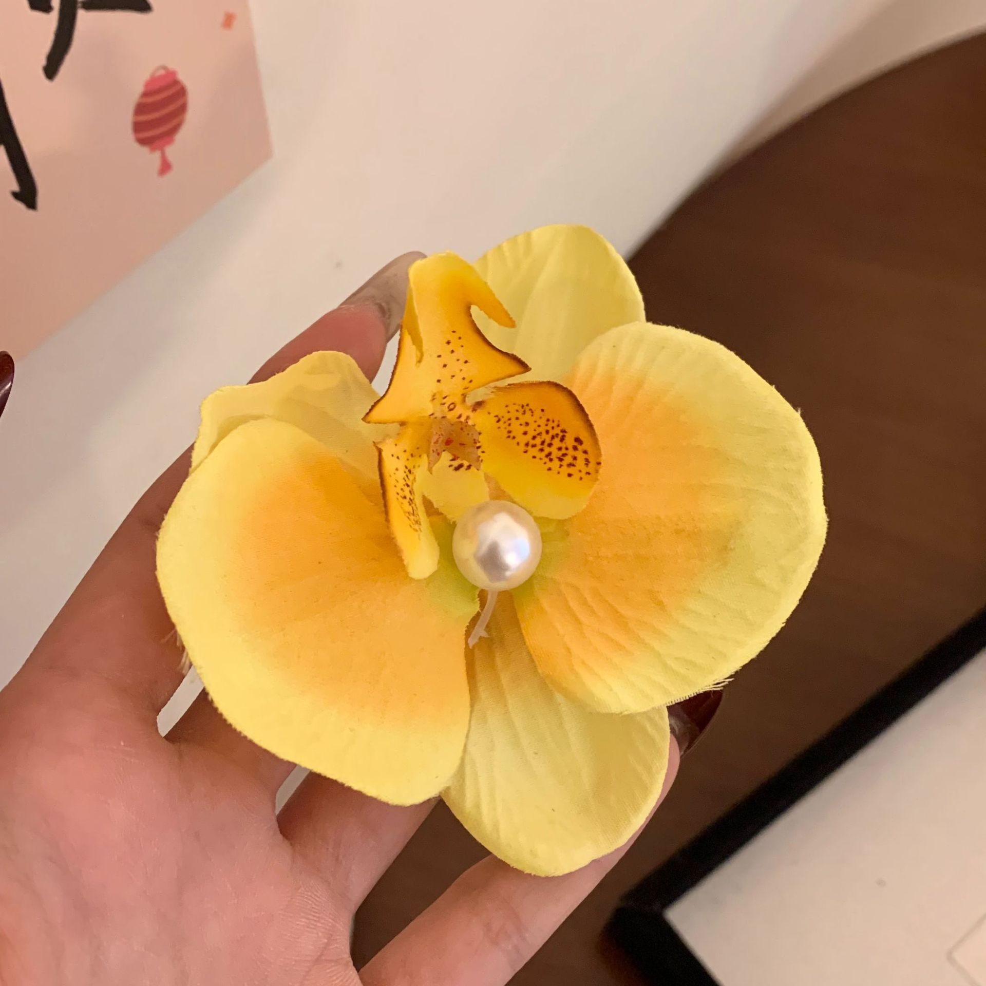 lemon-yellow phalaenopsis pearl barrettes