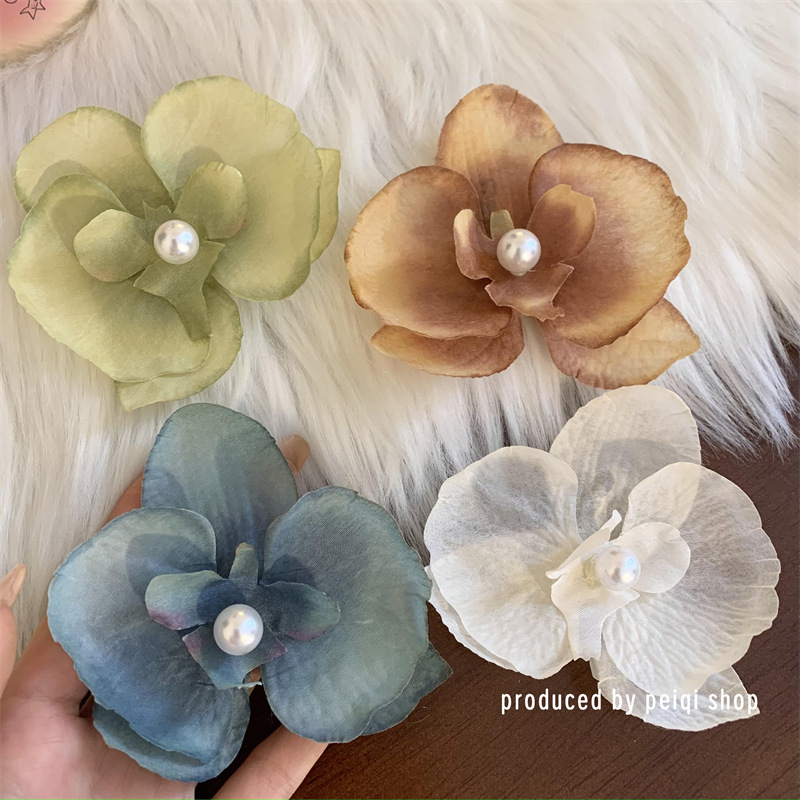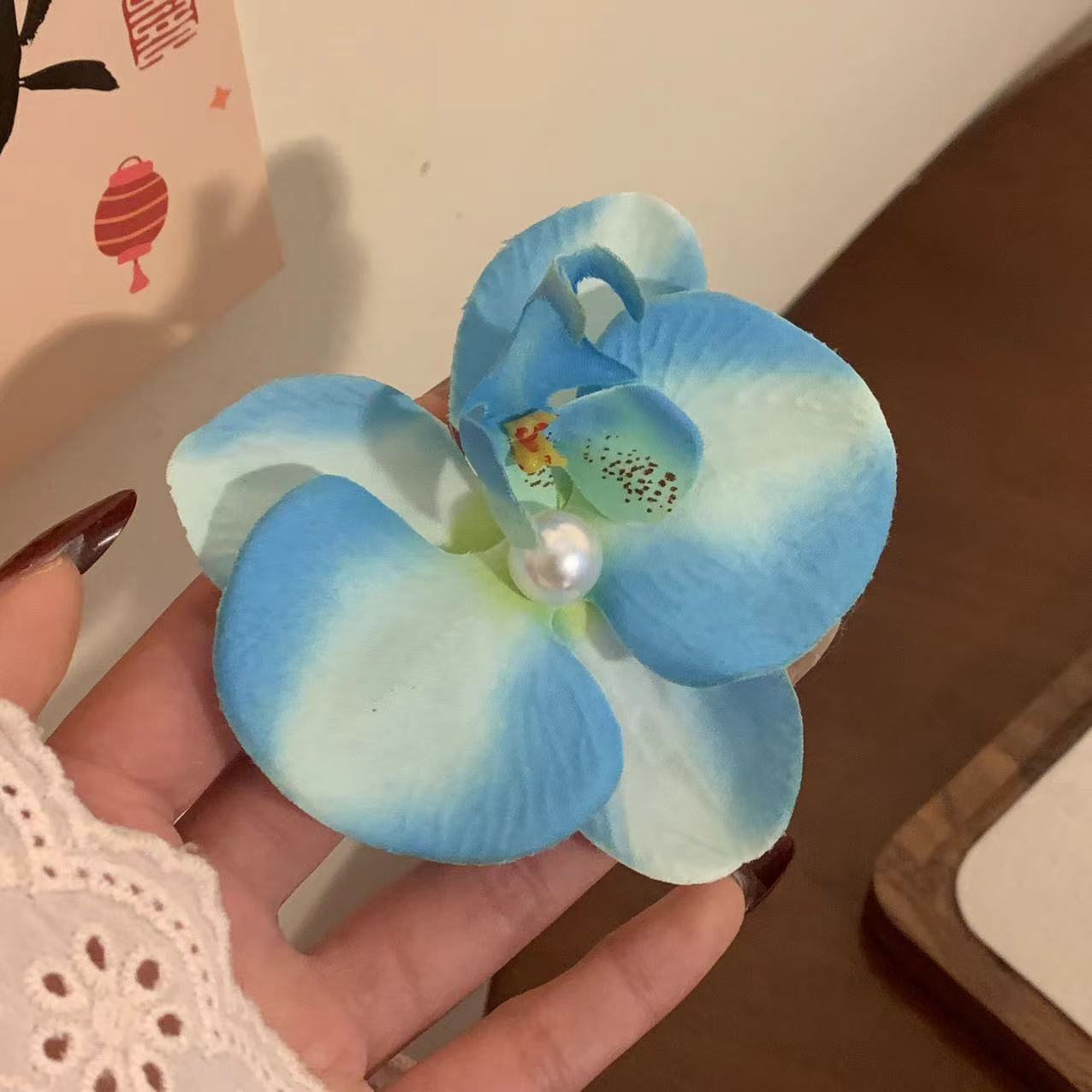 gradient blue-phalaenopsis pearl duckbill clip (raw silk)