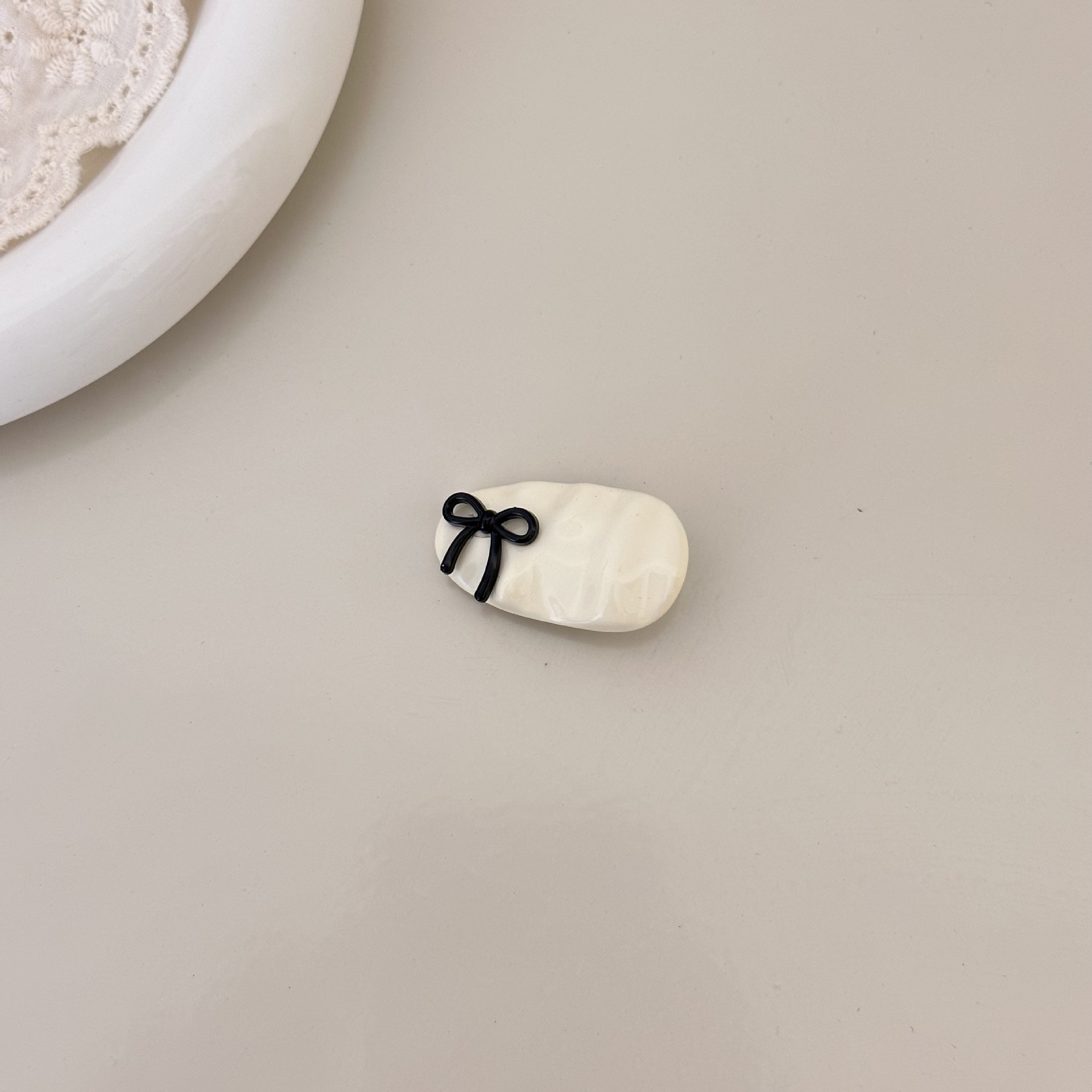 beige clip-bow