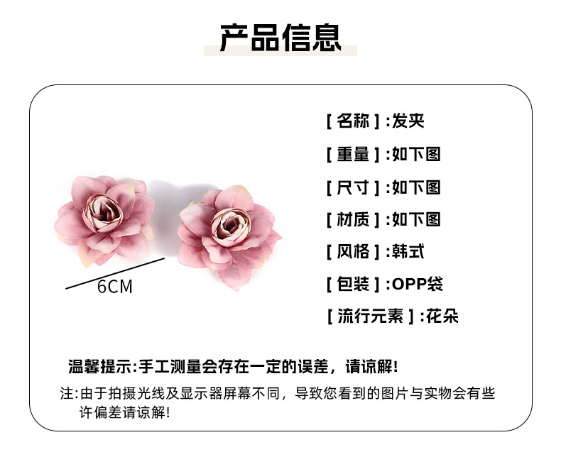 rose flower hair clip pink 4cm