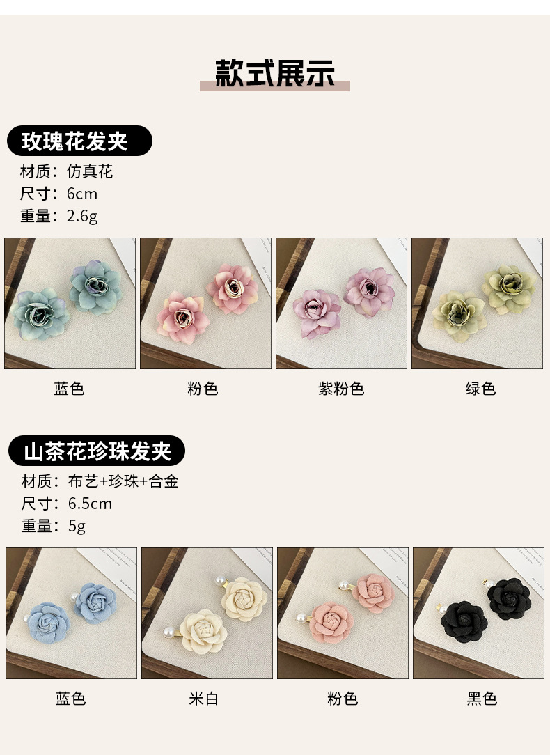 camellia pearl barrettes pink 6.5cm