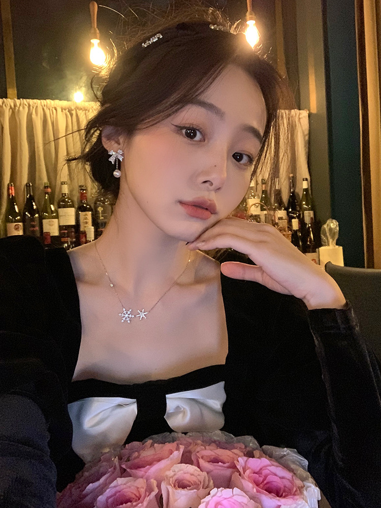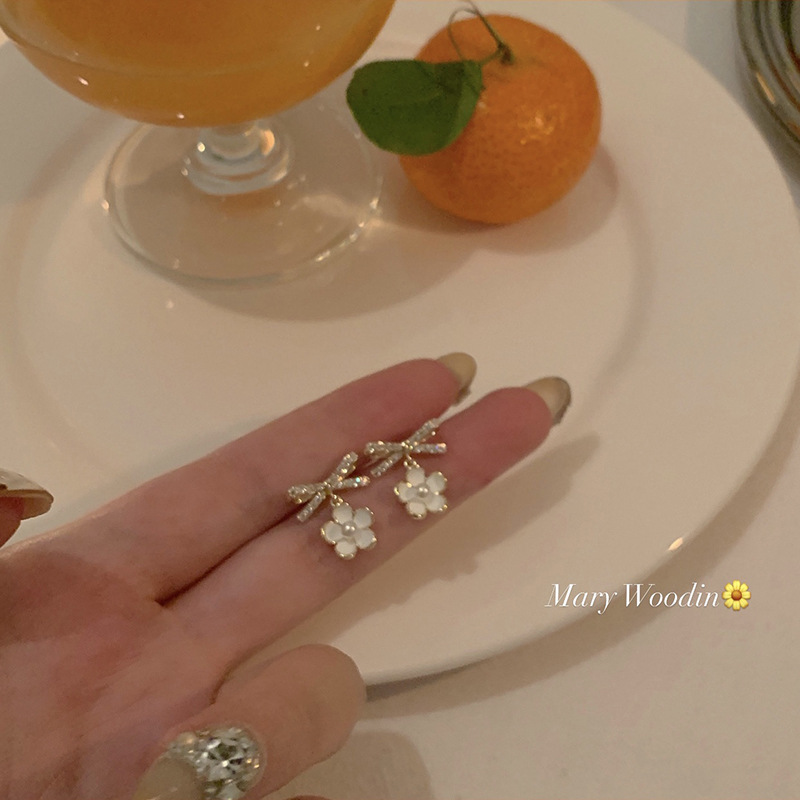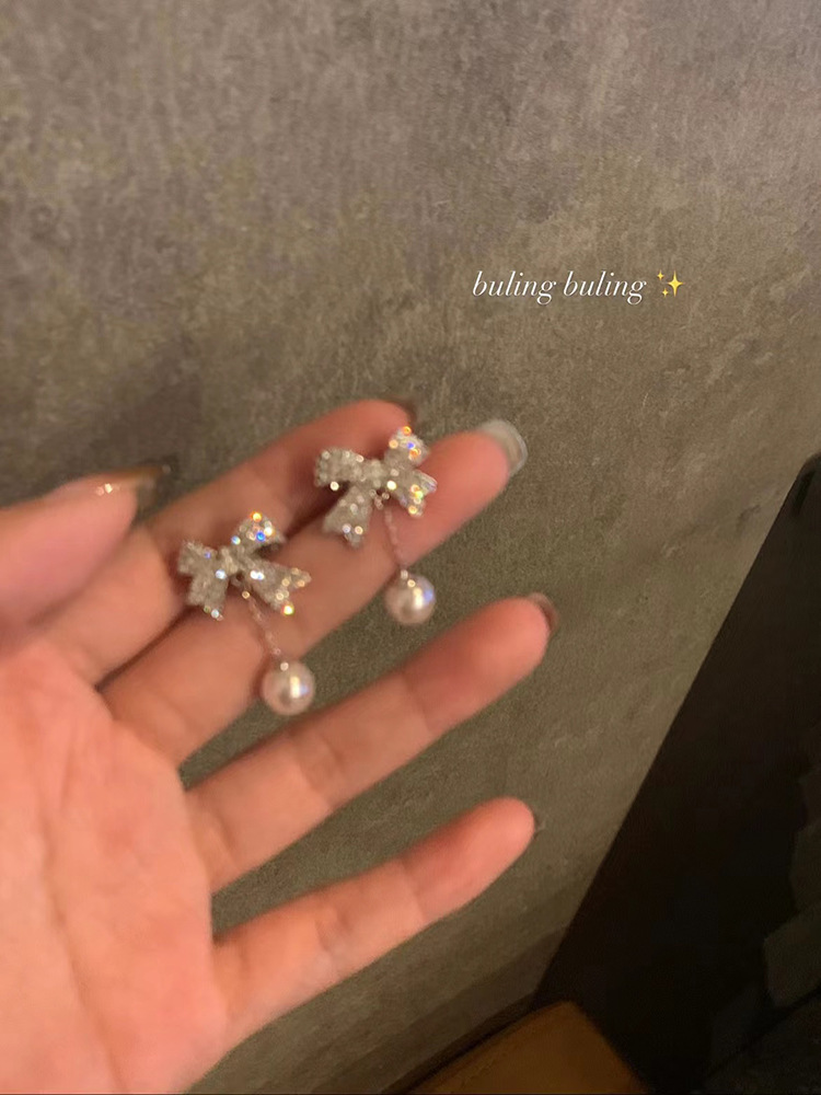 love pearl bow stud earrings model