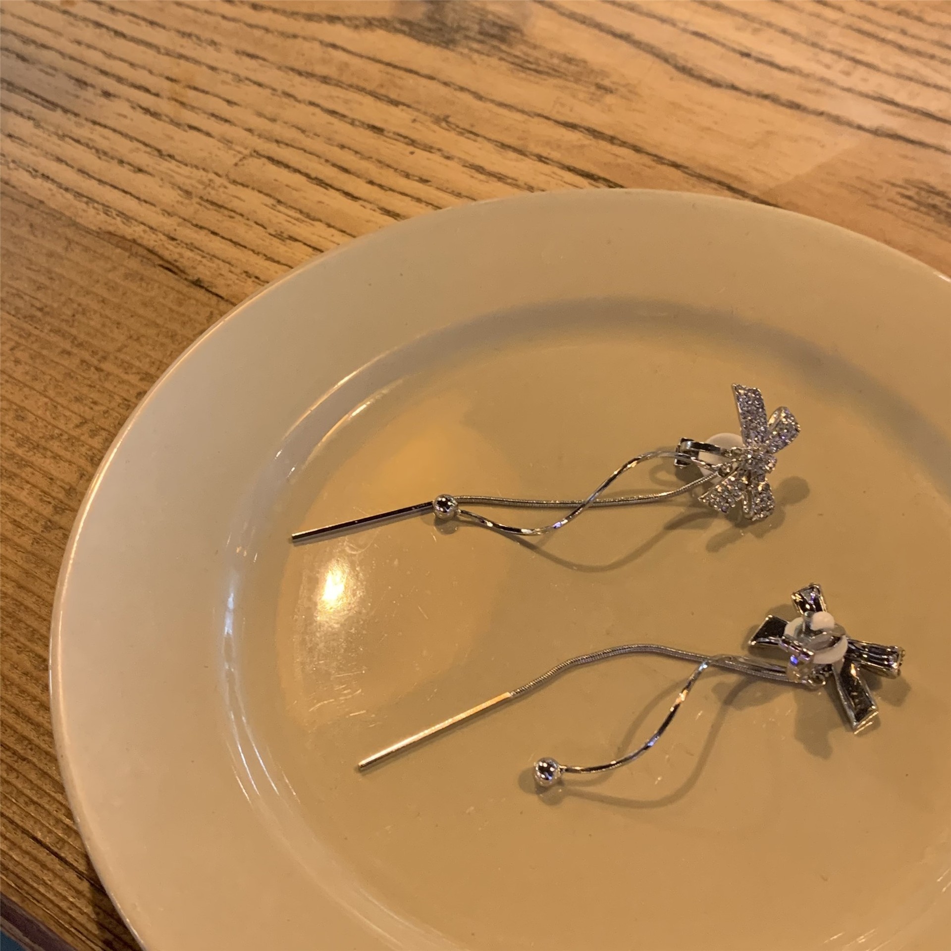 rhinestone butterfly tassel ear studs
