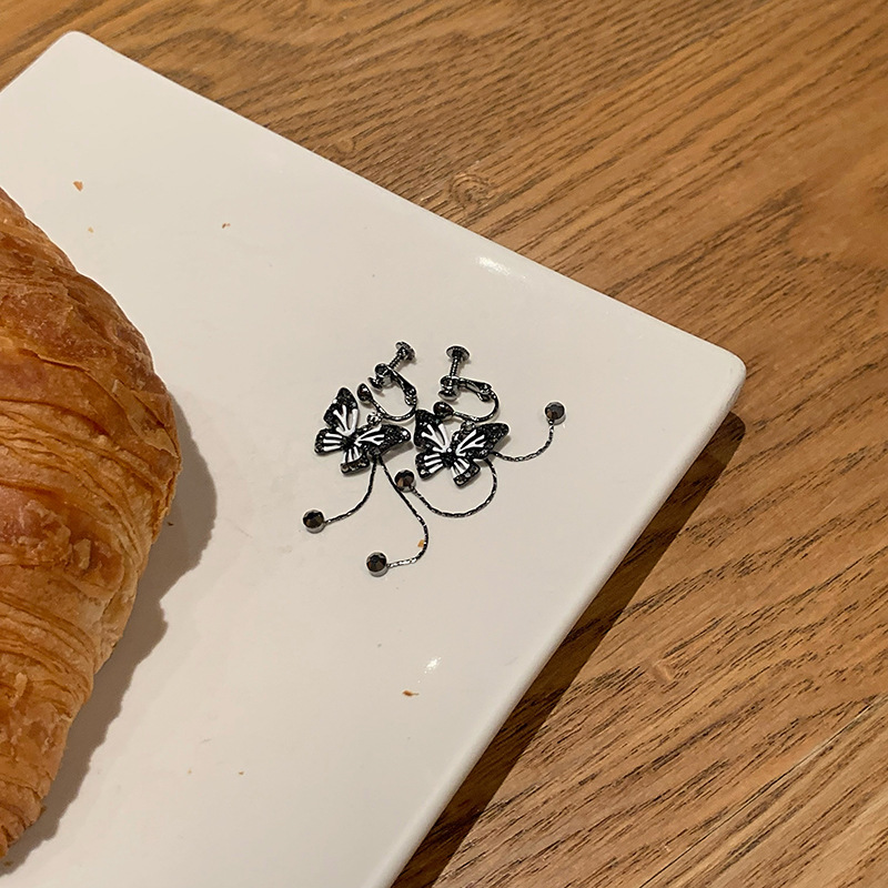 black butterfly tassel ear clip