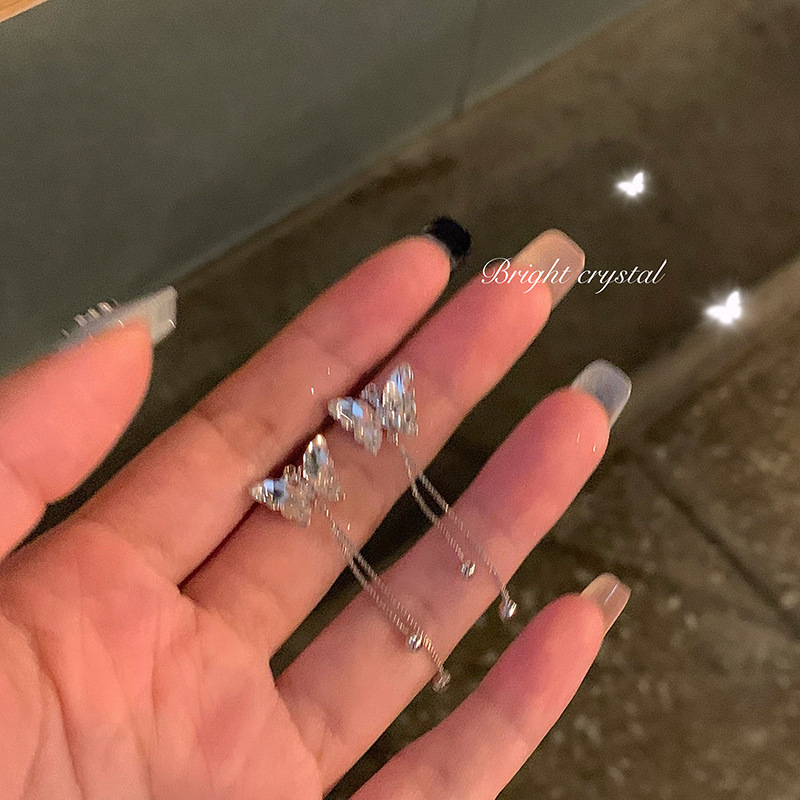 crystal butterfly tassel ear clip