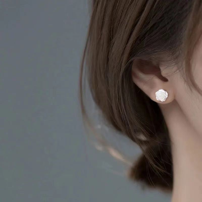 white rose stud earrings