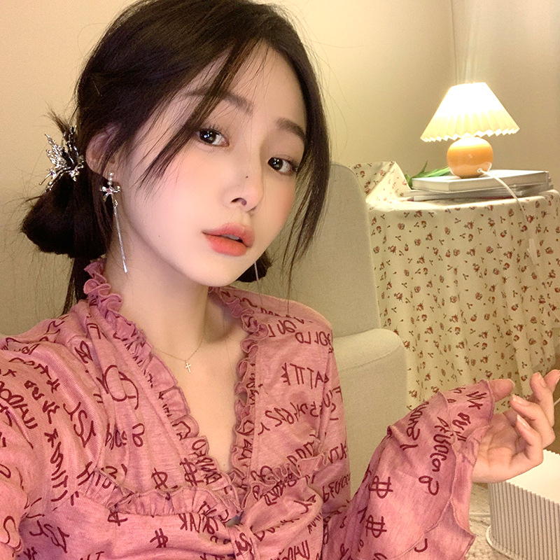 french style butterfly tassel ear studs