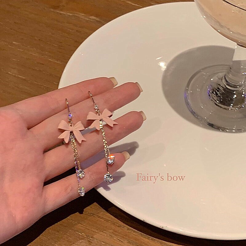 pink diamond butterfly tassel ear studs