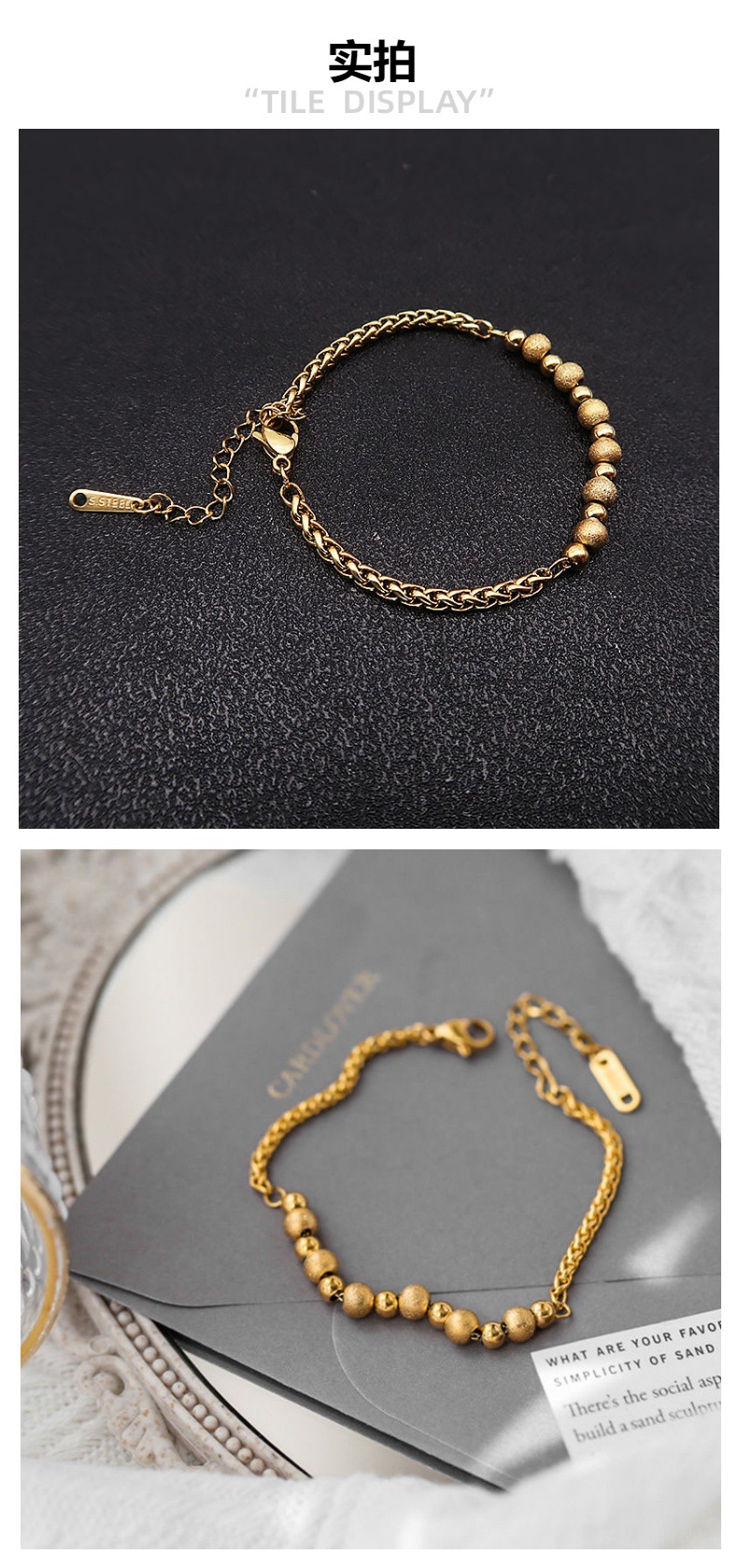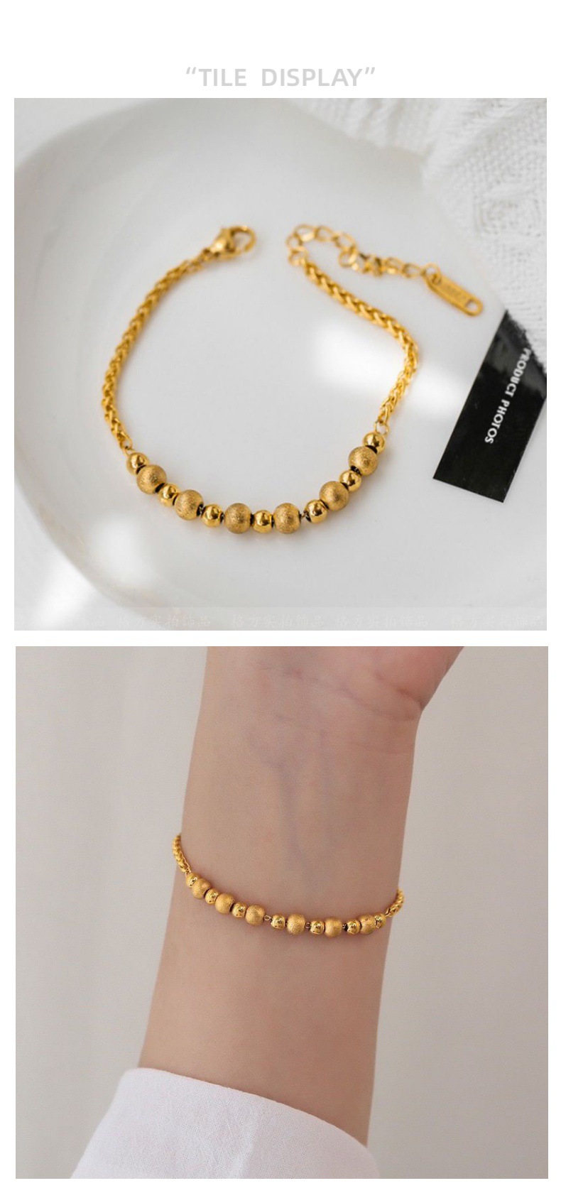 frosted beads bracelet gold