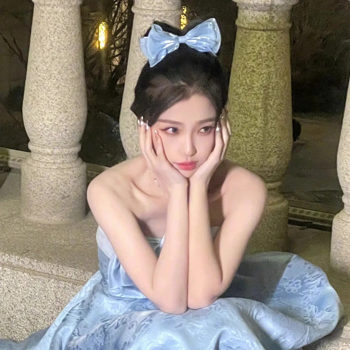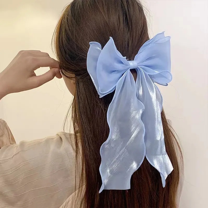 [gentle blue] bright silk organza bow spring clip