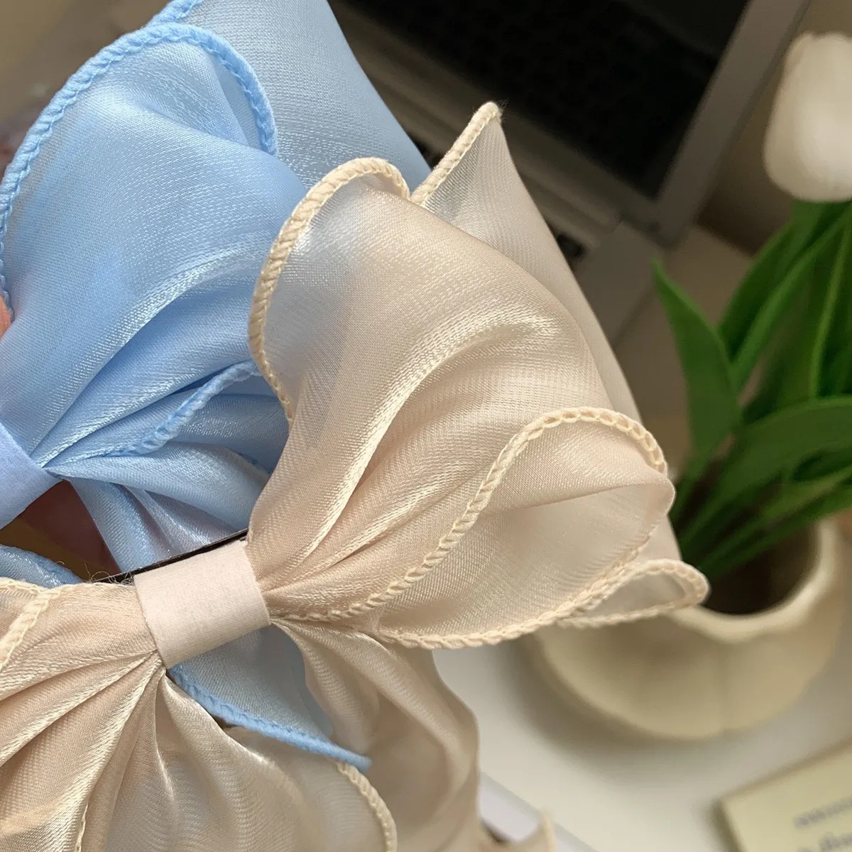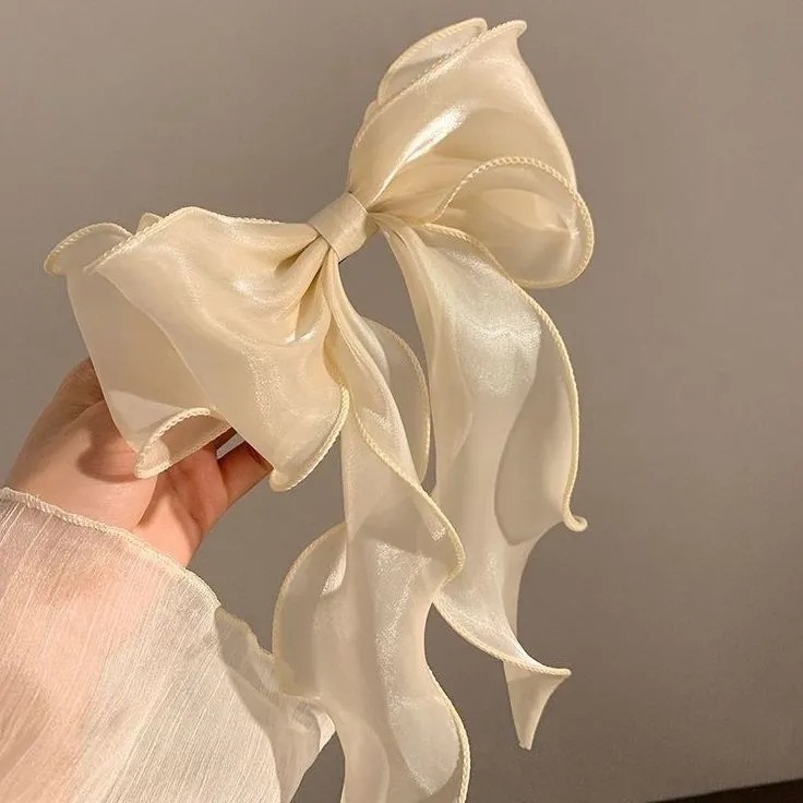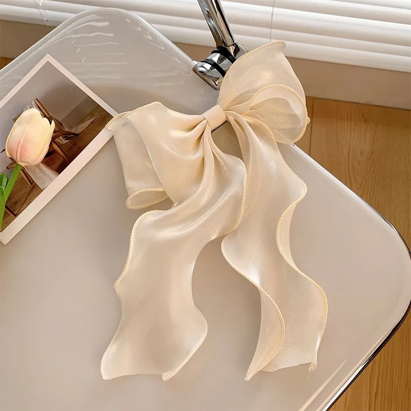 [champagne] bright silk organza bow spring clip