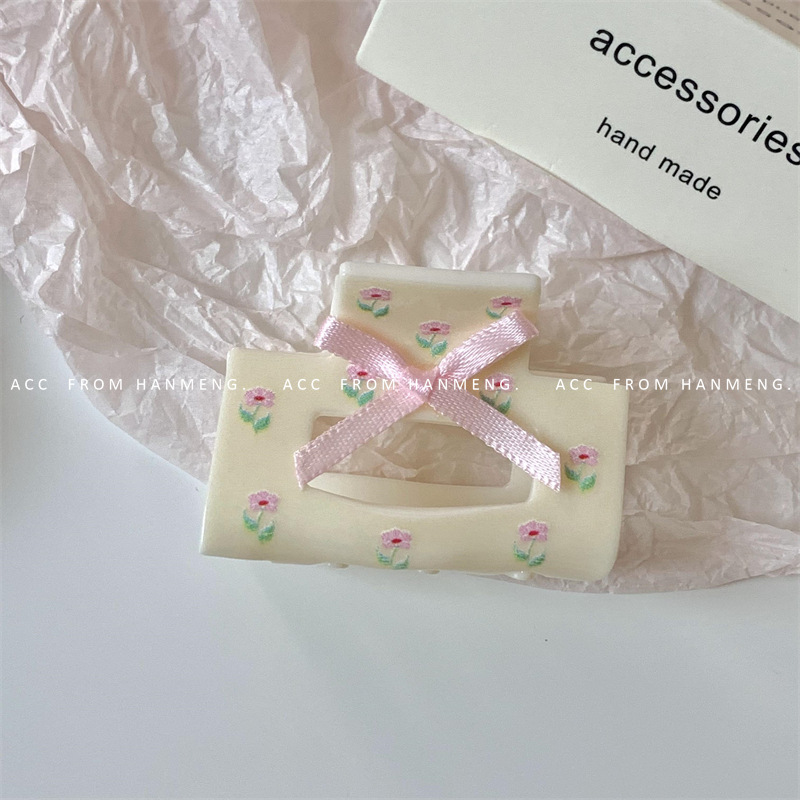 beige, spots of flowers rectangle small jaw clip