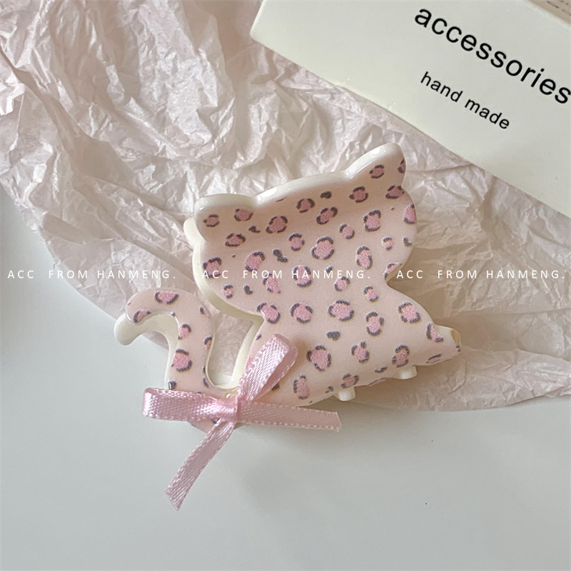 pink leopard cat small jaw clip