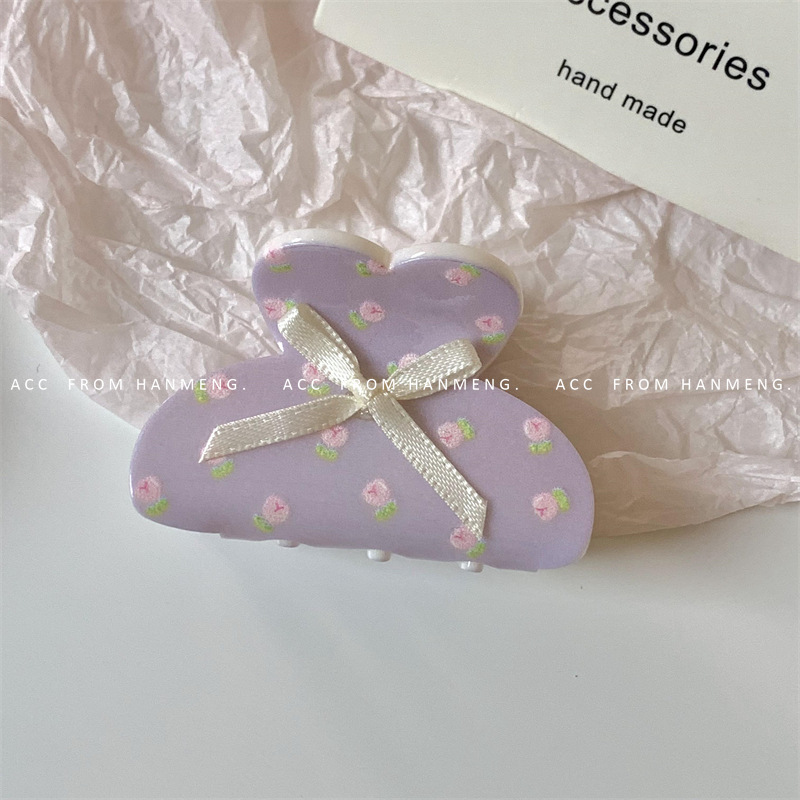 purple floral small jaw clip
